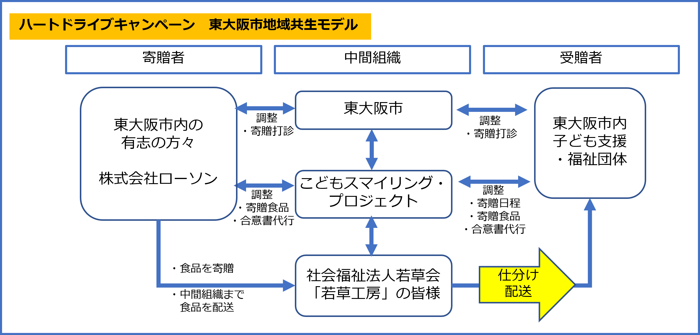 『こどもスマイリング・プロジェクトにおける食品寄贈を地域の福祉事業所と行う「ハートドライブキャンペーン 東大阪市地域共生モデル」について』