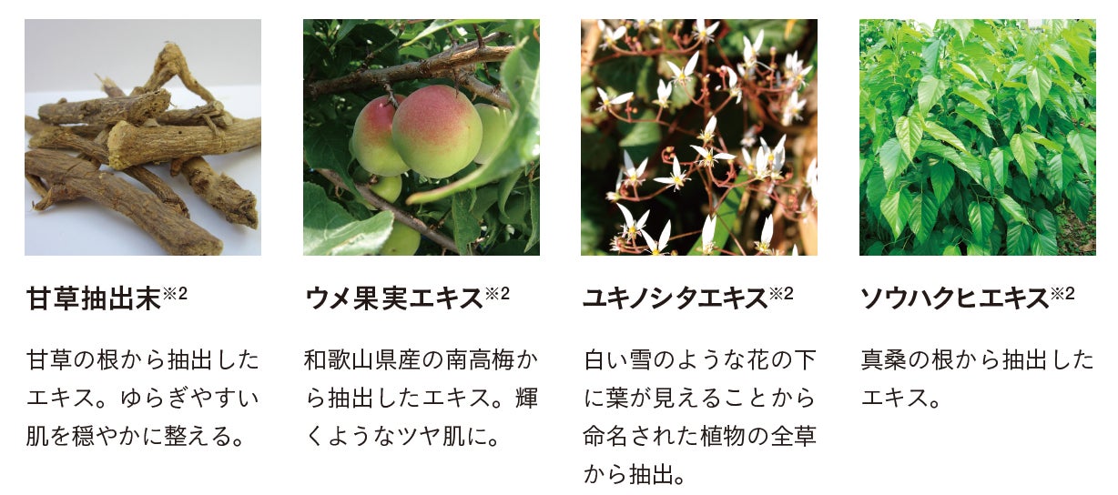 ※1 メラニンの生成を抑え、シミ、そばかすを防ぐ ※2 湿潤成分 ※3皮膚水分保持能改善効果による