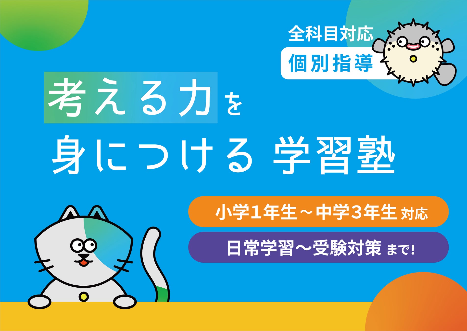 「正解のない問いに挑む塾」をコンセプトに、小学生から中学生を対象とした学習塾を運営。アクティブラーニングを軸とした独自メソッドで「考える力」を育てる教育を提供しています。大阪・西宮・東京など全国に校舎を展開し、オンライン校も運営。2026年4月、千駄木校の開校によりオンライン含む15校体制に。