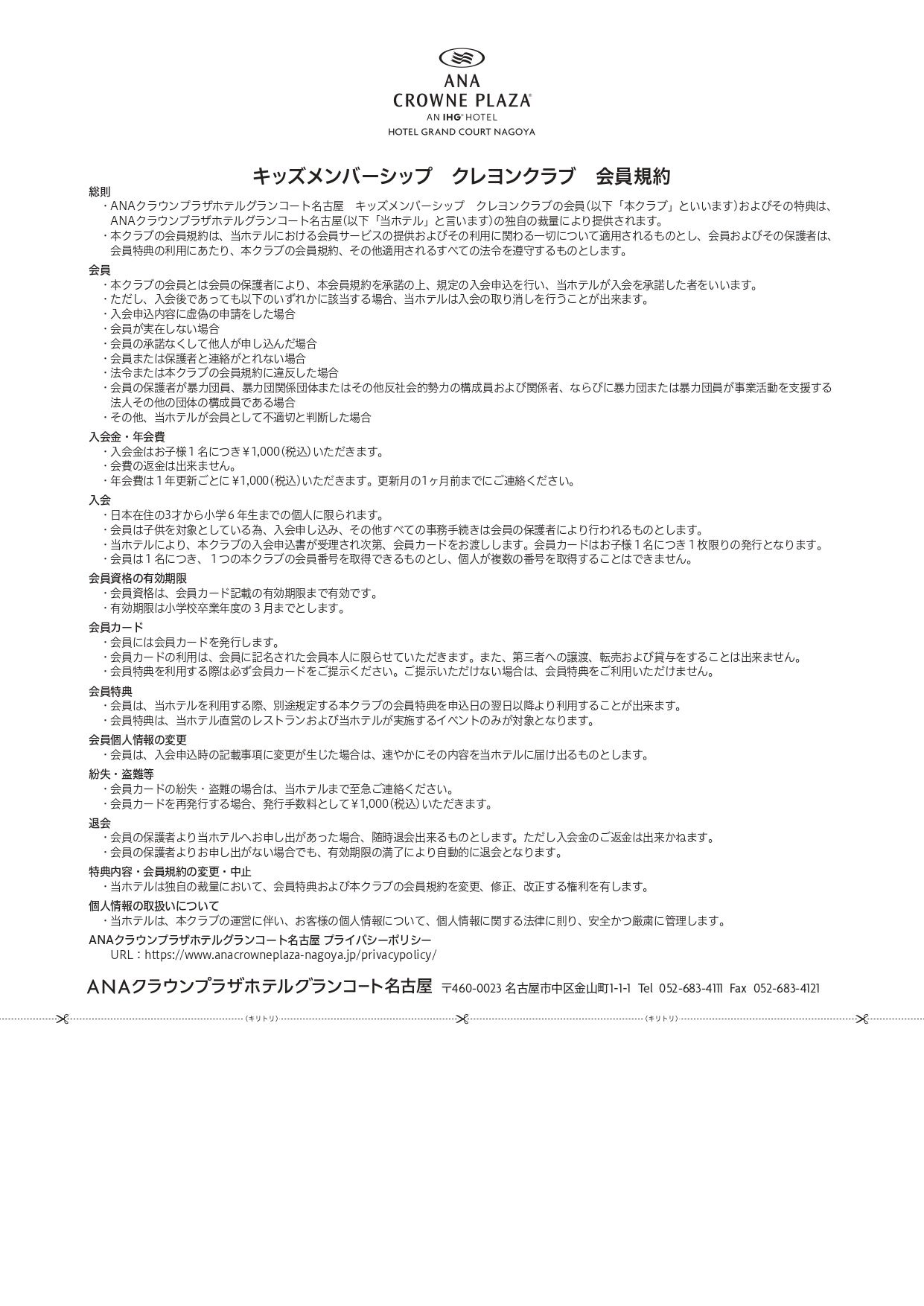 【ANAクラウンプラザホテルグランコート名古屋】キッズメンバーシップ「CRAYON CLUB(クレヨンクラブ)」誕生!