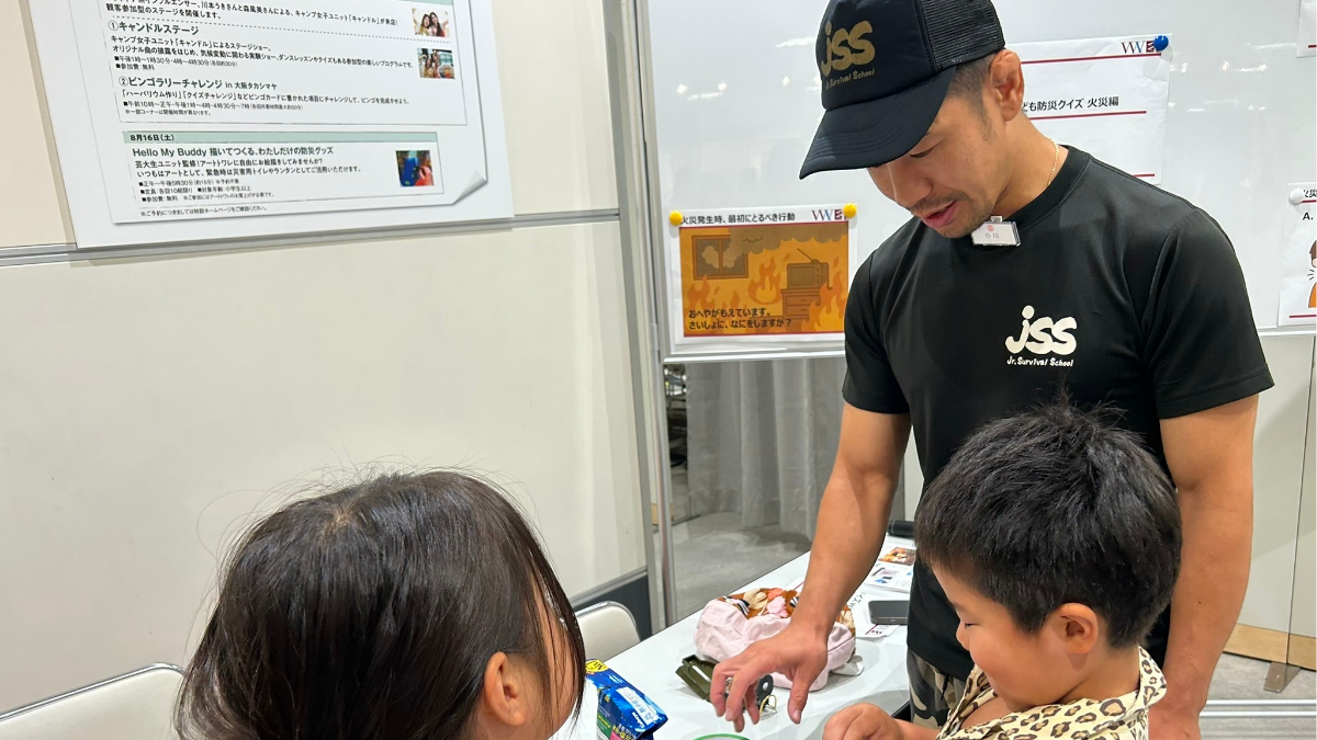 今回、ジュニアサバイバルスクールを主宰する格闘家・小川徹氏とタッグを組み、大阪髙島屋にて開催した親子向け防災ワークショップでは、被災直後のリアルな課題を“体験”を通じて伝えることを大切にしました。