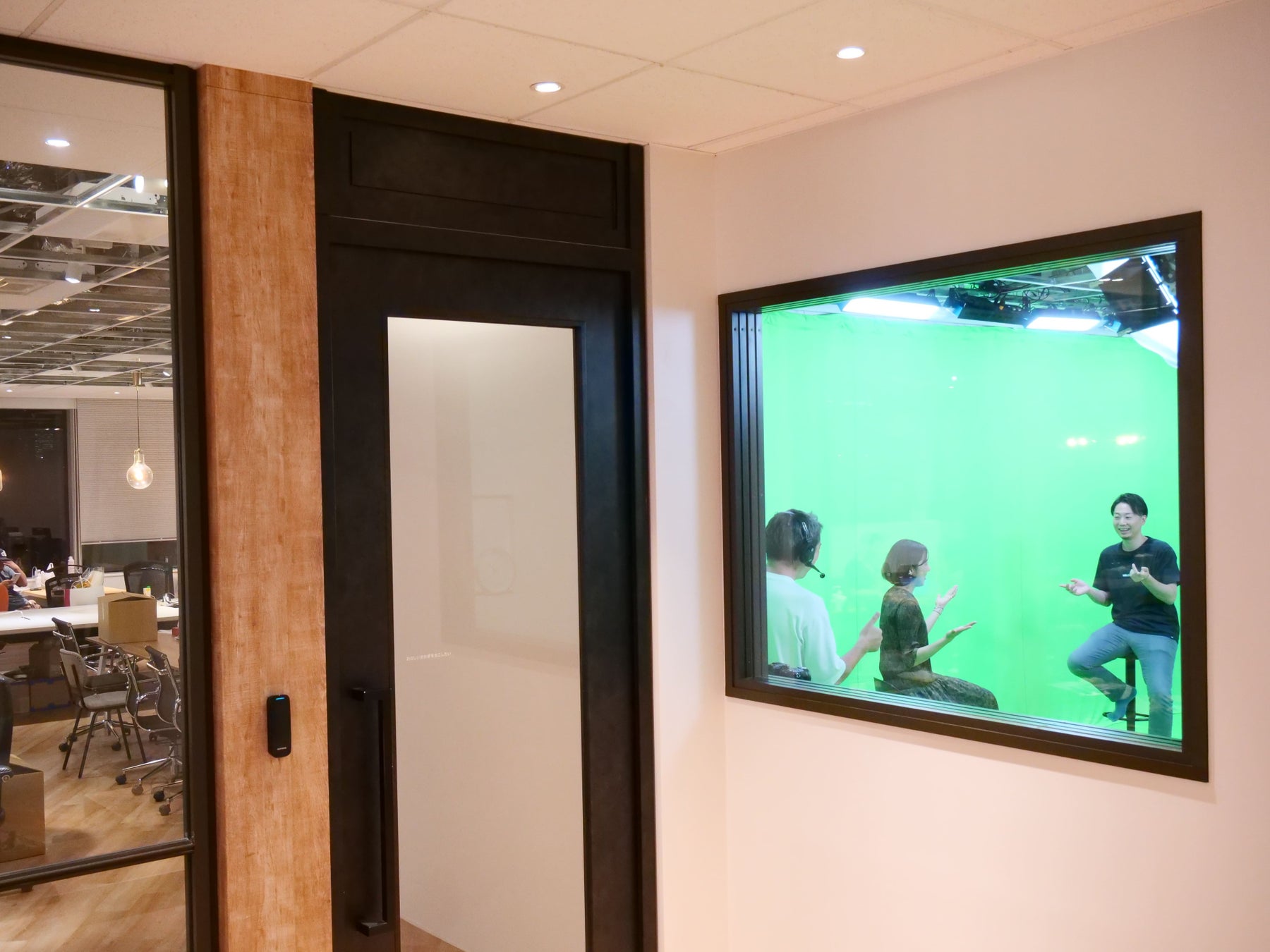 サニーサイドアップグループ本社オフィス内に誕生した最新・最先端かつ常設のリアルタイムバーチャル プロダクションXRスタジオは、トラッキング・センサーと連動した複数台の専用カメラとスタジオ照明をインストール。
