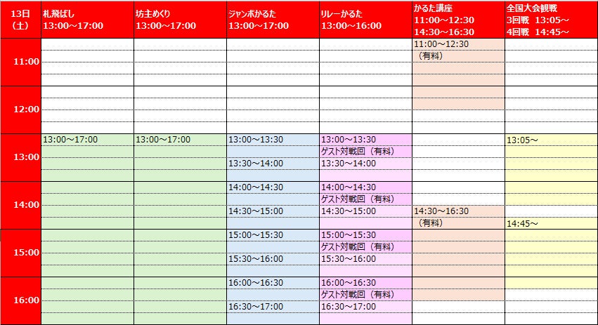 体験・参加型イベント 13:00~17:00/全国大会(大阪大会 B・C級) 9:00~19:30
