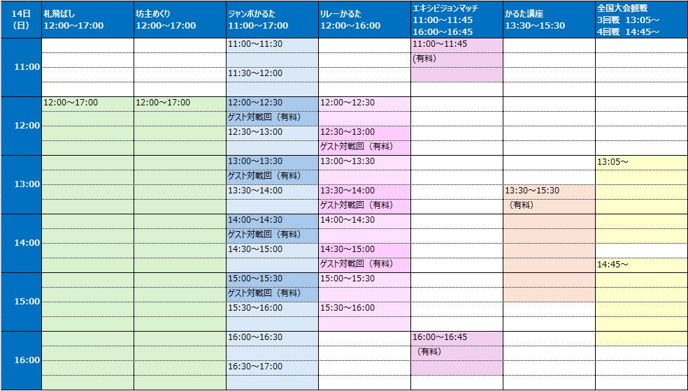 体験・参加型イベント 11:00~17:00/全国大会(大阪大会 D・E級) 9:00~18:00