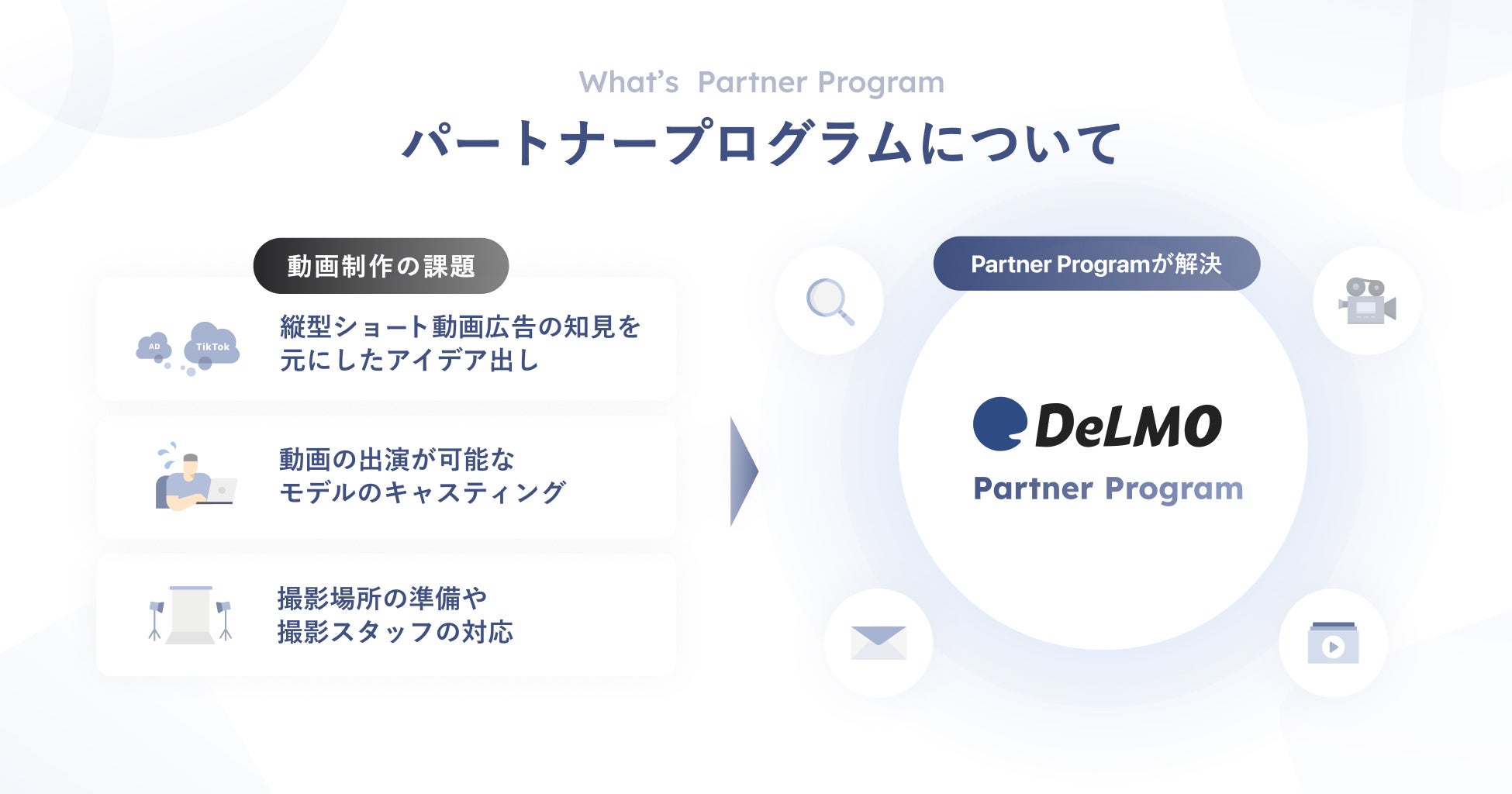 そのような課題を解決するため、DeLMOは、縦型ショート動画広告を支援した知見や1,500人以上のクリエイター(モデル)のネットワーク等をパートナーとして提供します。