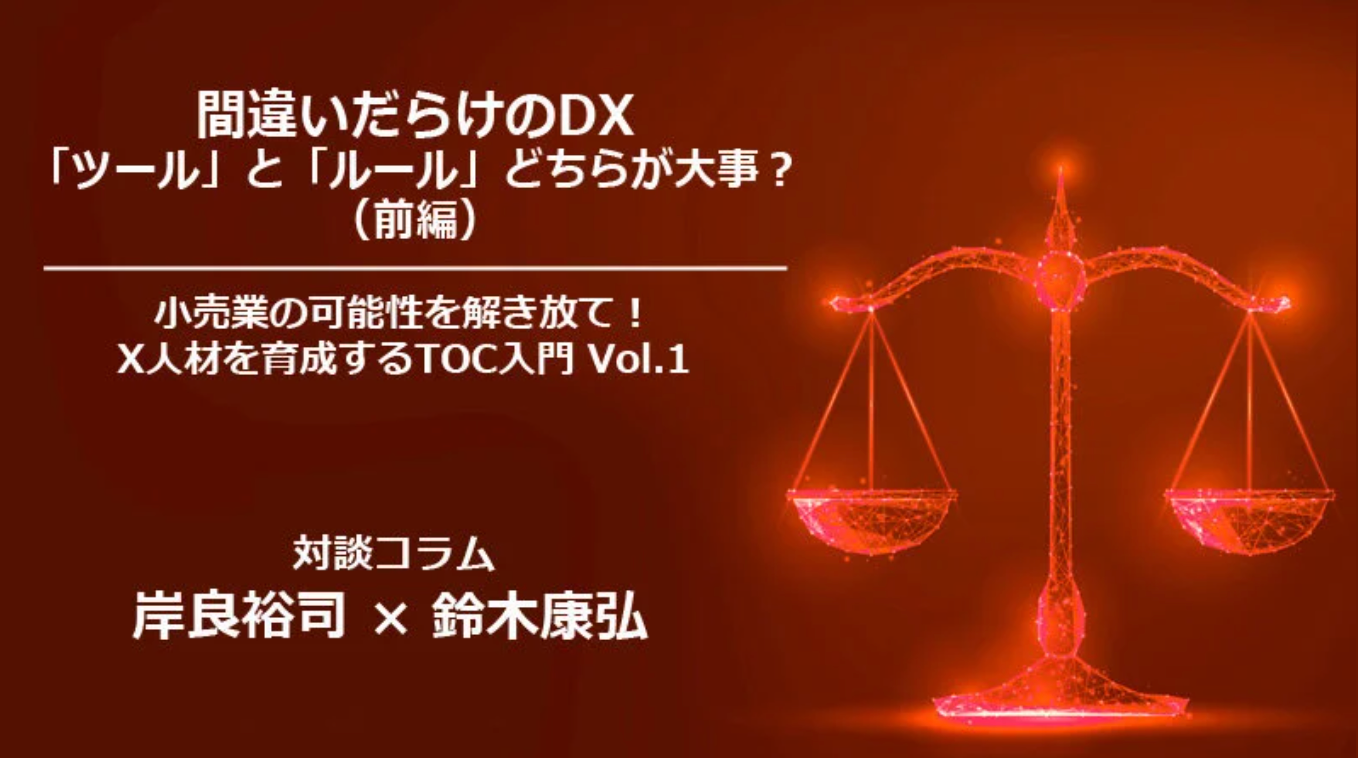 『DXマガジン』において、デジタルシフトウェーブ代表取締役社長の鈴木康弘氏(元セブン&アイ・ホールディングス CIO)と弊社CEOの岸良祐司がDXの本質を議論する「小売業の可能性を解き放て! X人材を育成するTOC入門」と題した連載が10月12日から始まりました。