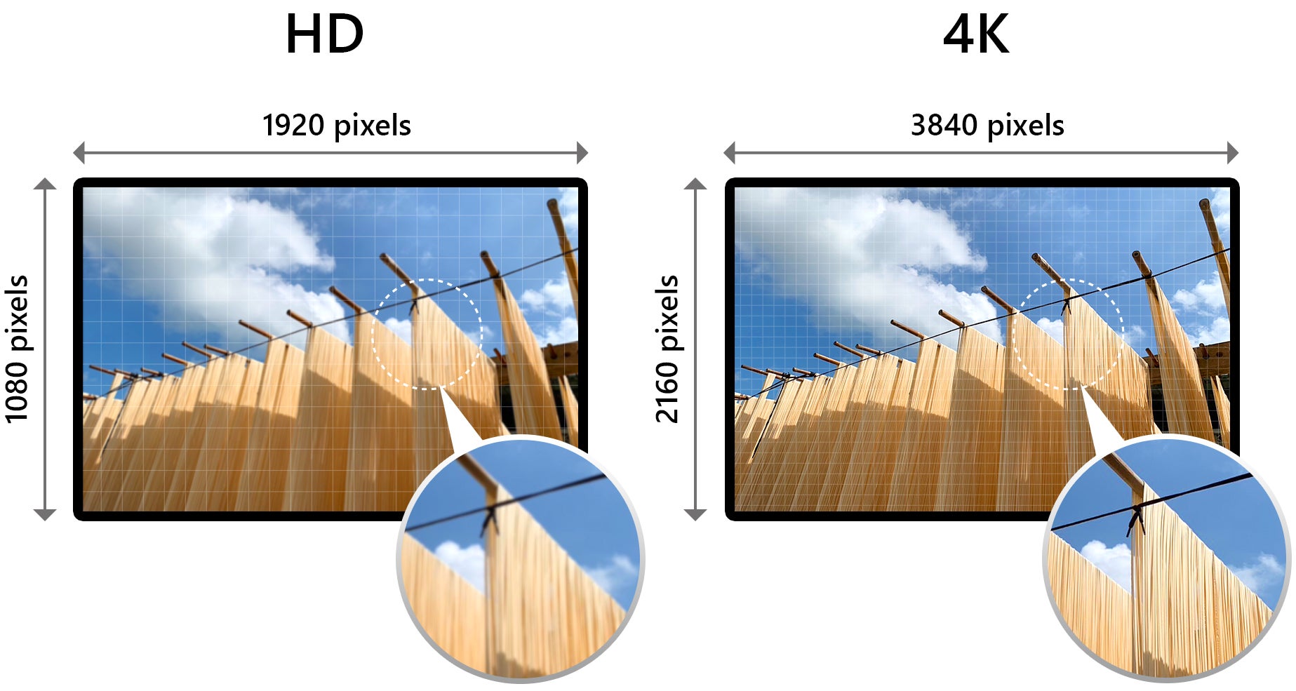 大画面でも細部までくっきり表現。フルHDの4倍の画素数を持つ緻密な高精細4Kパネルにより、