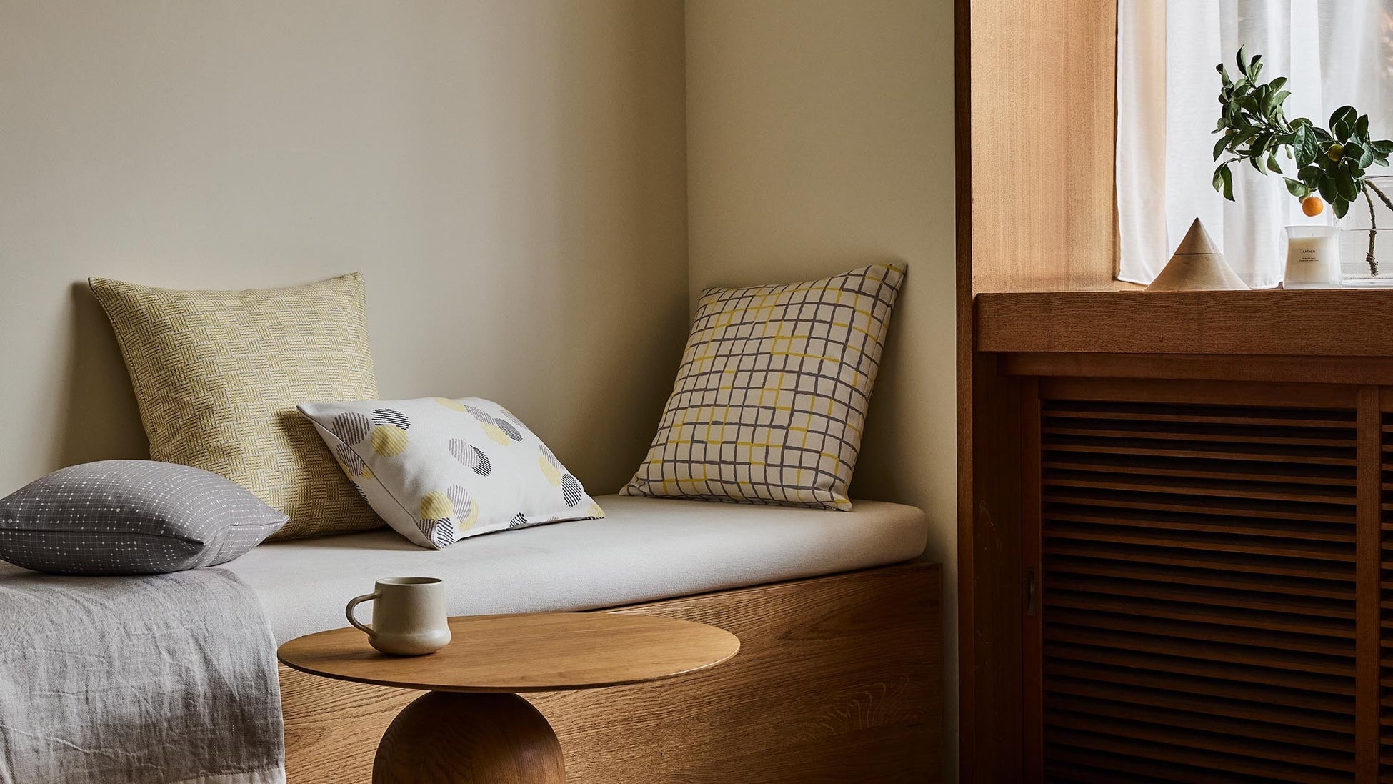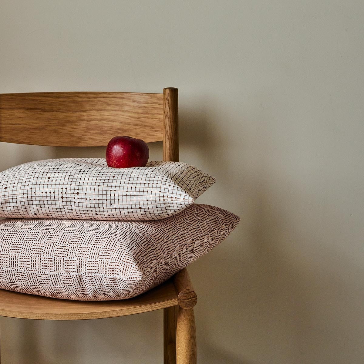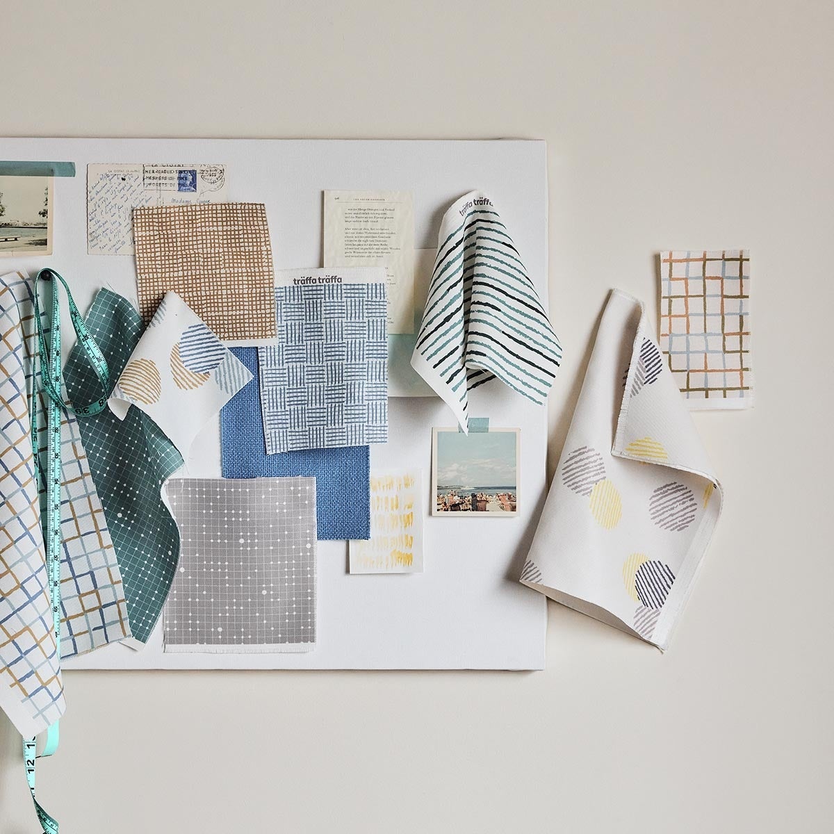 思わず触りたくなるような温かい手触りの質感を、プリント生地で表現することにこだわりデザインしたコレクション。やさしい色合い、揺らぎのある線、近くと遠くで変わる色や柄の印象が、日常のインテリアにぬくもりをもたらすことを願っています。