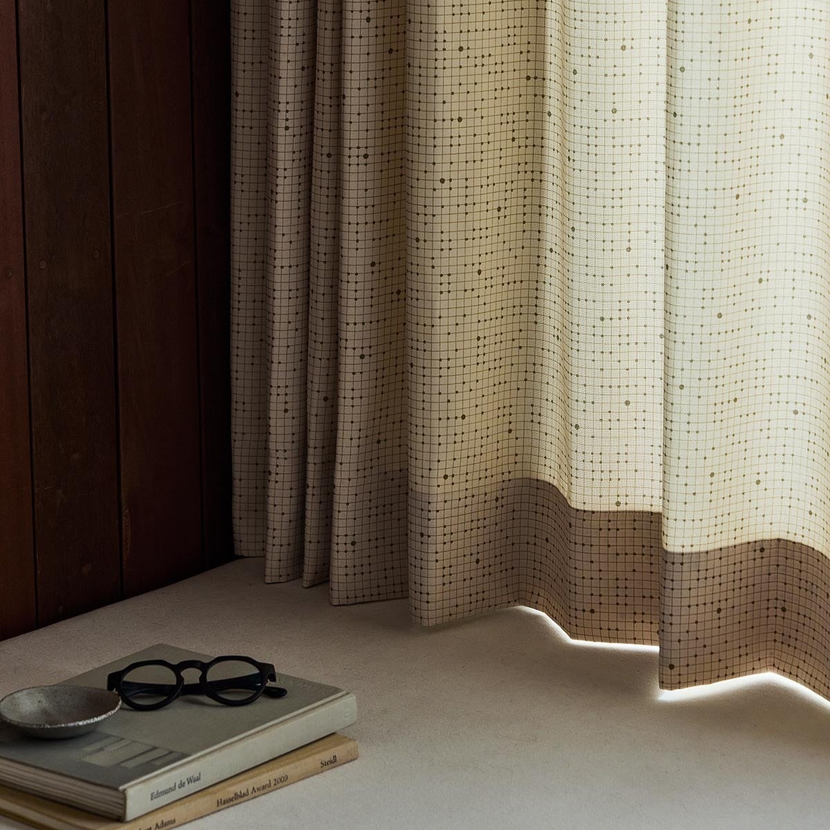 方眼紙にランダムに描いたドットが星空のように見えたことで名付けられました。グリッドに小さなドット模様が描かれている生地。シンプルながらお部屋に彩どりを添えてくれます。