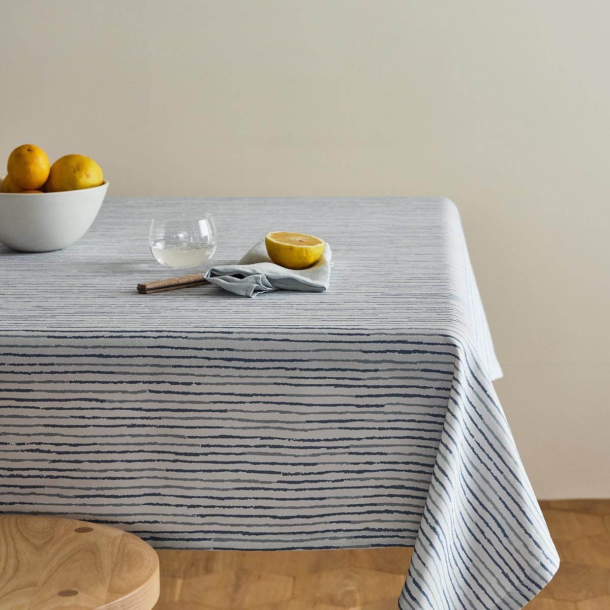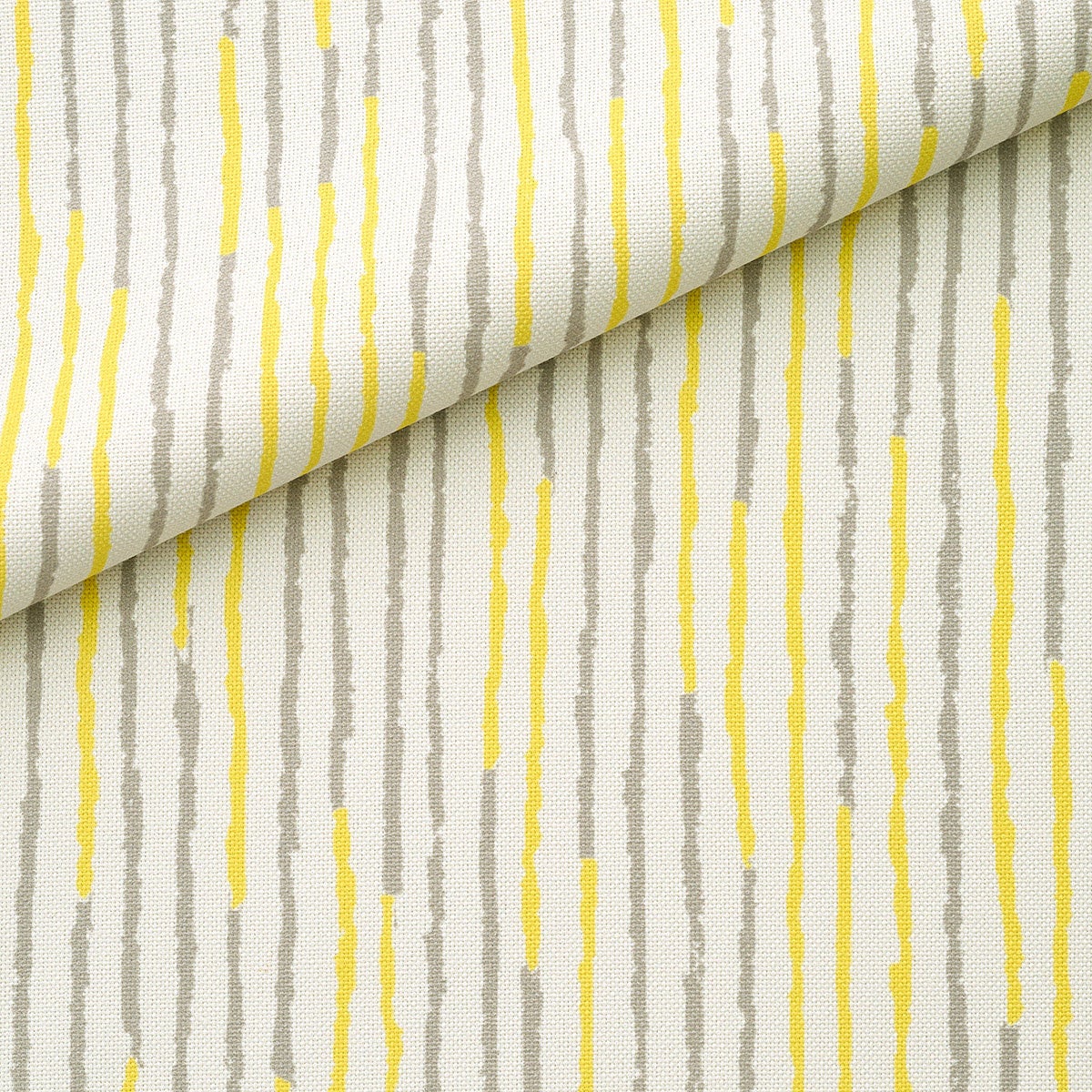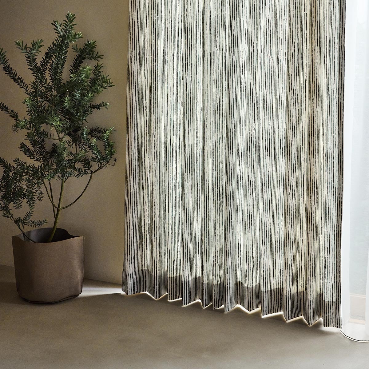 揺らぎのある線によって描かれたストライプ柄の生地は、イレギュラーに線の色が変わっていくことで、鮮やかな印象です。