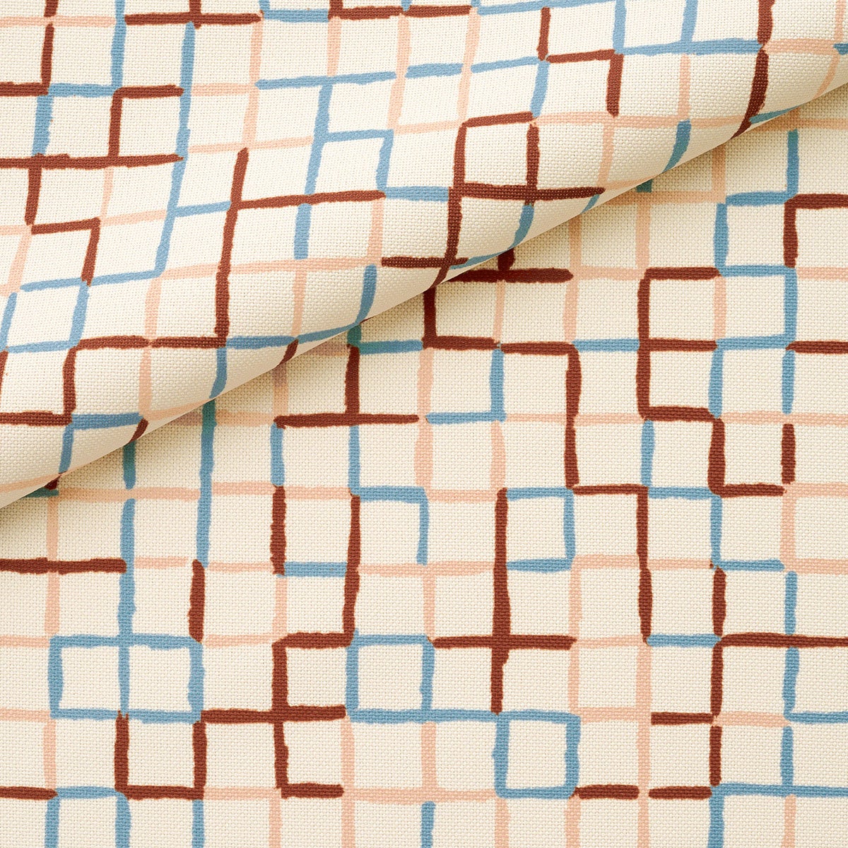3色の手描きの線が混ざり合ったグリッド柄の生地。遠くから見ると1色にも見え、シンプルな柄にイレギュラーさを追加したことで生まれた、ゆらぎのある楽しいデザインです。
