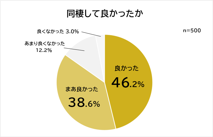 恋人同士の同棲について調査したところ、「同棲して良かった」と答えた人が多数となりました。