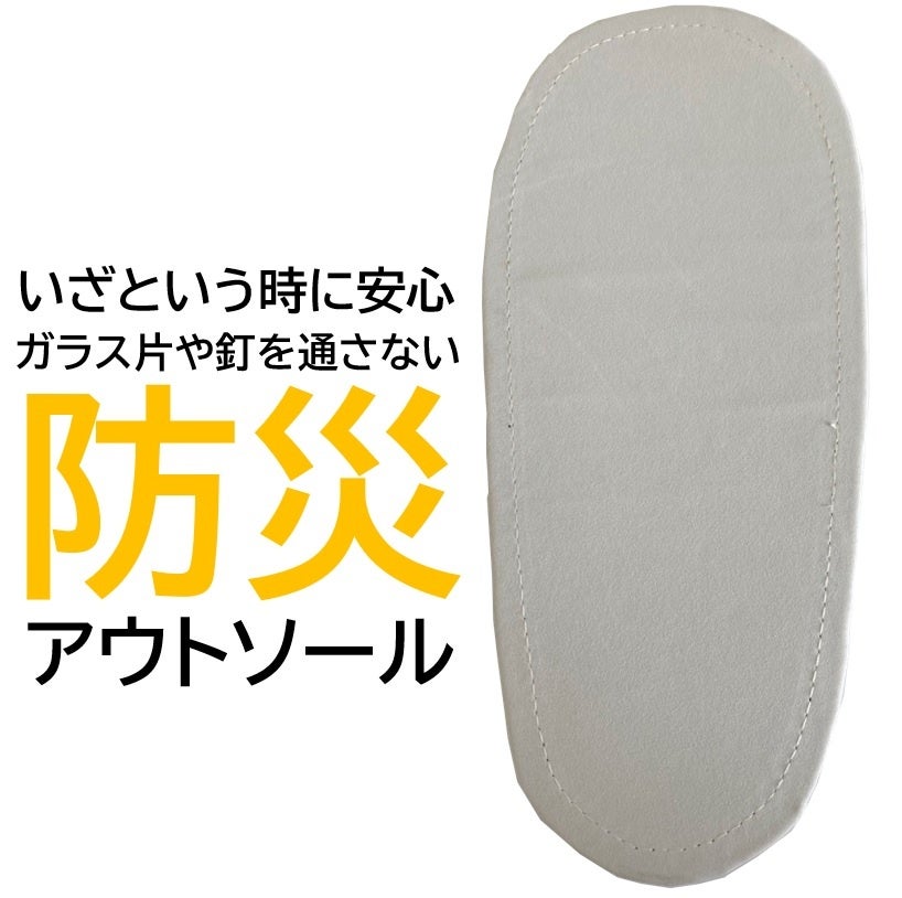 ④いざという時も履いて安心、ガラス片や釘から足元をまもる「防災アウトソール」