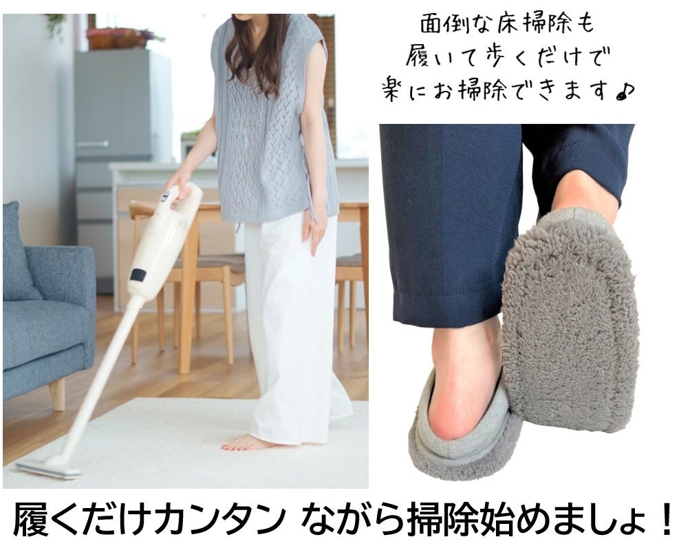 ついでに部屋の床掃除まで出来る。いざという時は足元をまもる防災スリッパに早変わり。