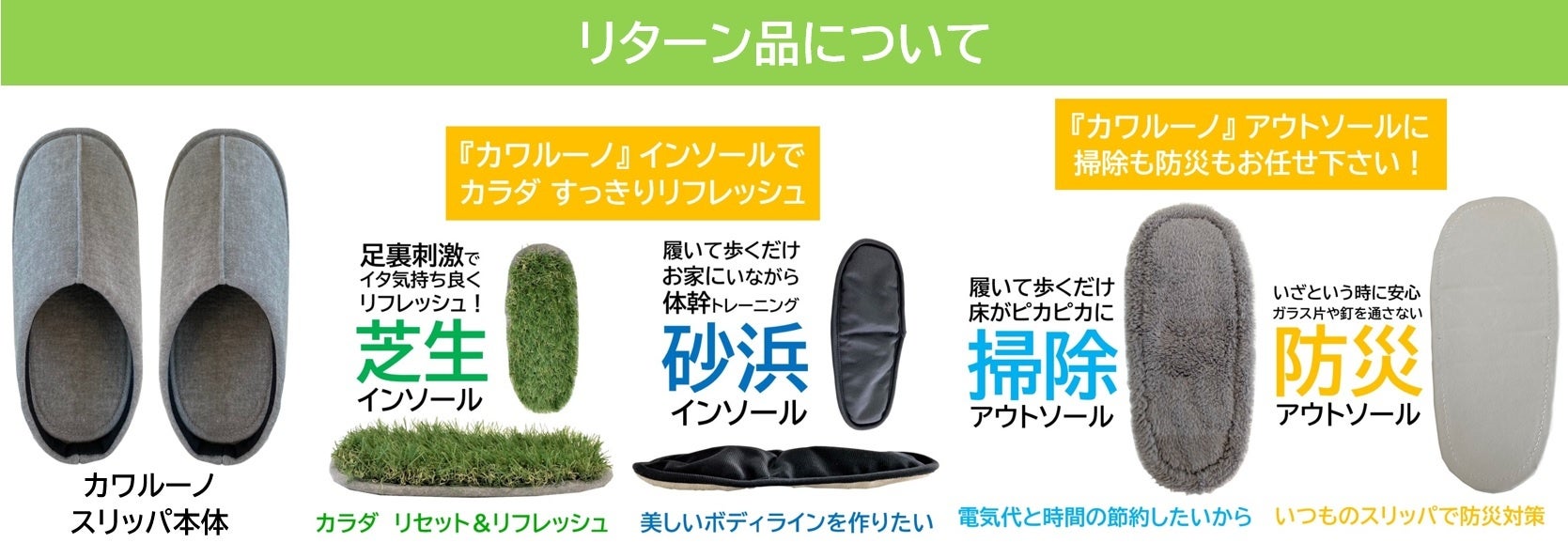 - 着せ替えスリッパ『カワルーノ』基本セット インソール・アウトソール製品特長
