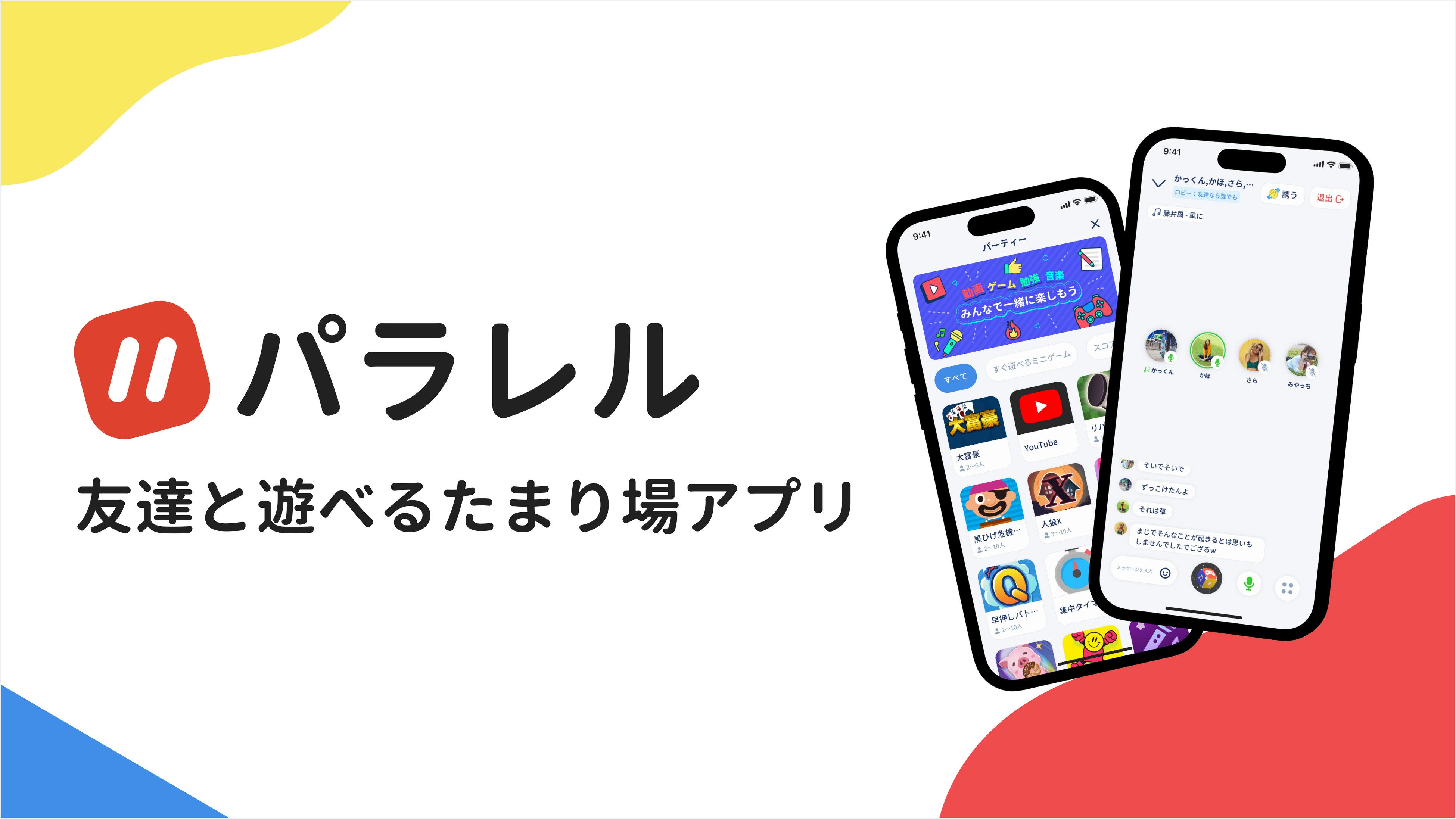私たちが開発する「パラレル」は、”友達と公園や部室で遊ぶ”といった行動と同じように、オンラインで気軽に集まり、通話やチャットをしながらゲームや動画、音楽などのエンタメコンテンツを楽しむことができる、”オンラインのたまり場”です。