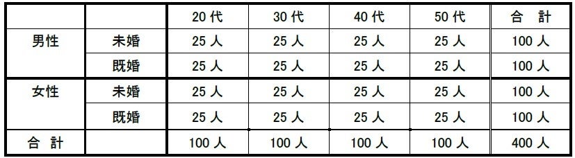 ◆方法 インターネットによる調査(インターネット調査会社を通じてサンプリング・集計)