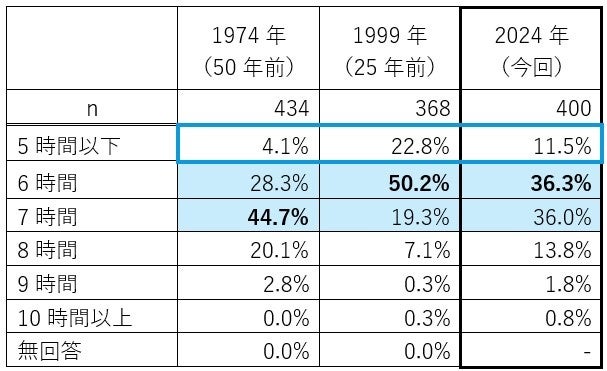 シチズン時計(本社:東京都西東京市、社長:佐藤敏彦)では、6月10日の「時の記念日」を前に、全国のビジネスパーソン400人を対象とした『生活時間』に関する調査を実施しました。本調査では、25年前(1999年)と、50年前(1974年)に当社が実施した同様の調査との経年変化も探りました。
