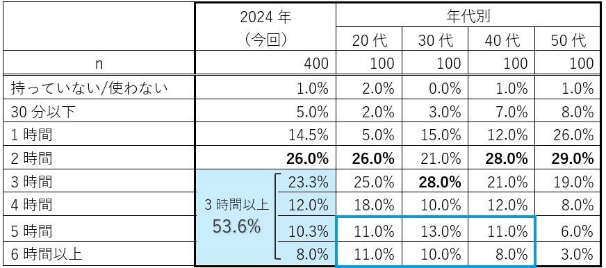 スマホ利用は1日「3時間以上」が過半数、「5時間以上」のヘビーユーザーも