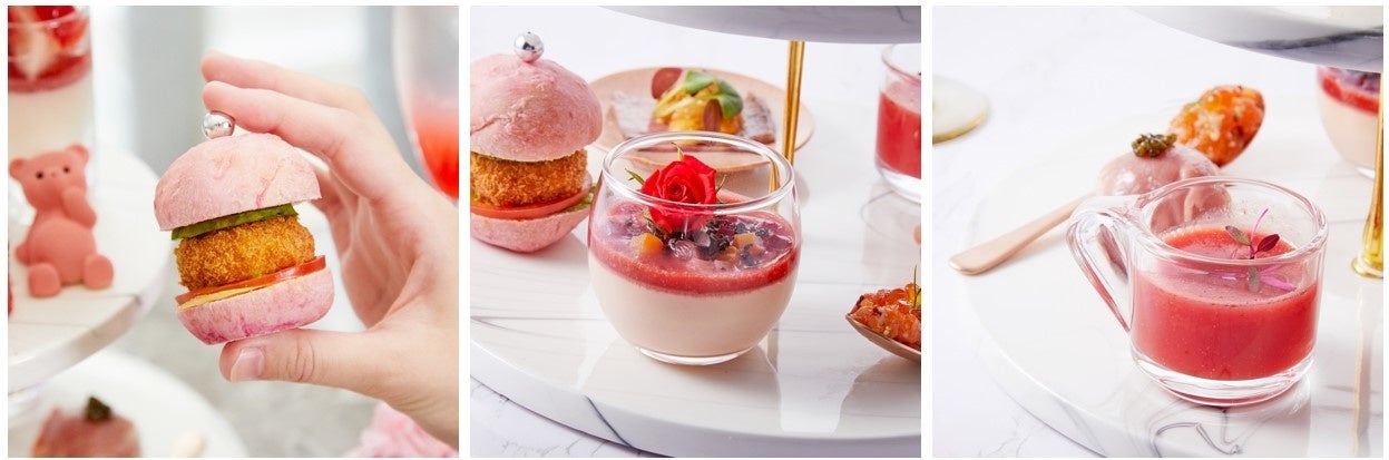 “Afternoon Tea ~Pink Ribbon ~”は、「ピンクリボン運動」にちなみ、ピンクをテーマにした、ピンク尽くしの華やかで可愛らしいセットです。LOUANGE TOKYOで人気のマカロン・パリトロも、ピンクリボンアフタヌーンティー限定フレーバーで登場。希少なルビーチョコレートを使用したタルトやフォンダンショコラをはじめ、ライチやベリー、ピーチなどのピンクにちなんだ多彩なスイーツが盛りだくさん。また、ローストビーフや富士山サーモンを使用したセイボリーなどのお食事に至るまで、ピンクにこだわった内容になっています。飲み物は、オーガニックハーブティー9種類からご自由にお選び頂き、お代わり自由でご用意いたします。自身の健康を考えるきっかけに、心躍るピンクづくしなアフタヌーンティーを堪能してみてはいかがでしょうか。