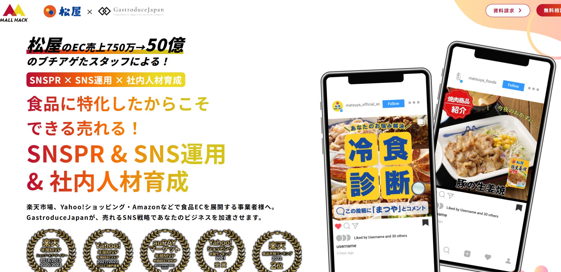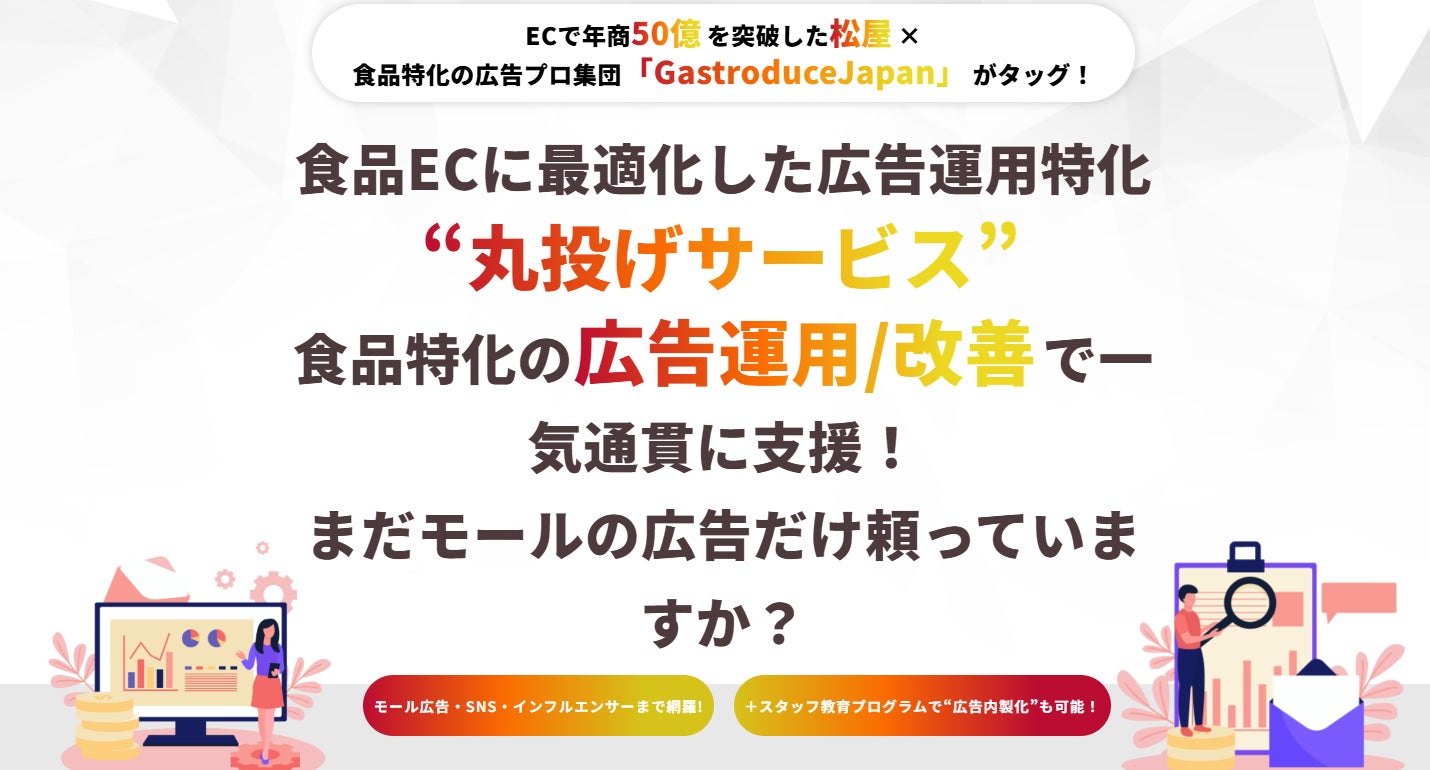 食品ECに特化したコンサルティング企業 GastroduceJapan株式会社(本社:福岡県福岡市博多区/代表取締役:若松友貴、以下「GastroduceJapan」)は、牛めし・定食チェーンとして全国的に知られる 松屋フーズ(EC売上50億円超)とタッグを組み起動した、食品EC事業者向けに特化したジョイントベンチャー 株式会社モールハック(本社:東京都武蔵野市/代表取締役:安藤吉信、以下「モールハック」)において、