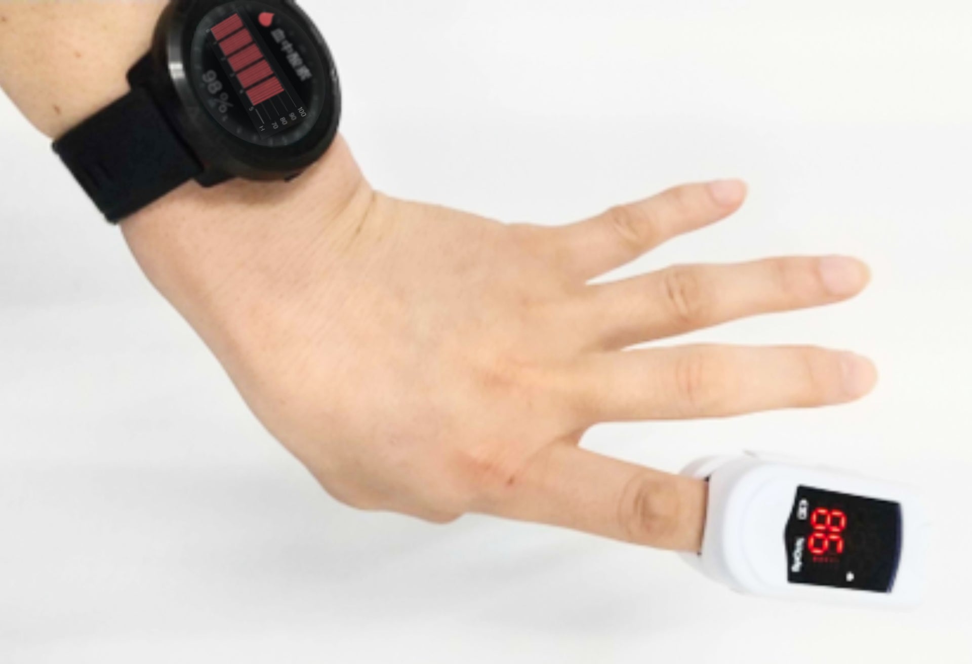 1)医療機器とスマートウォッチで同時計測、比較による精度確認研究