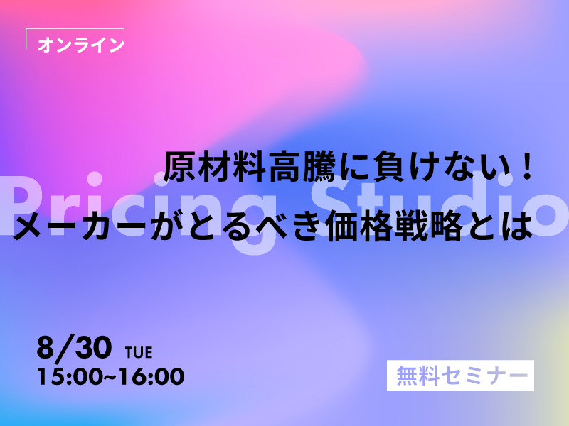 オンラインセミナー「原材料高騰に負けない!メーカーがとるべき価格戦略とは」(無料)を8月30日(火)15時に開催いたします。