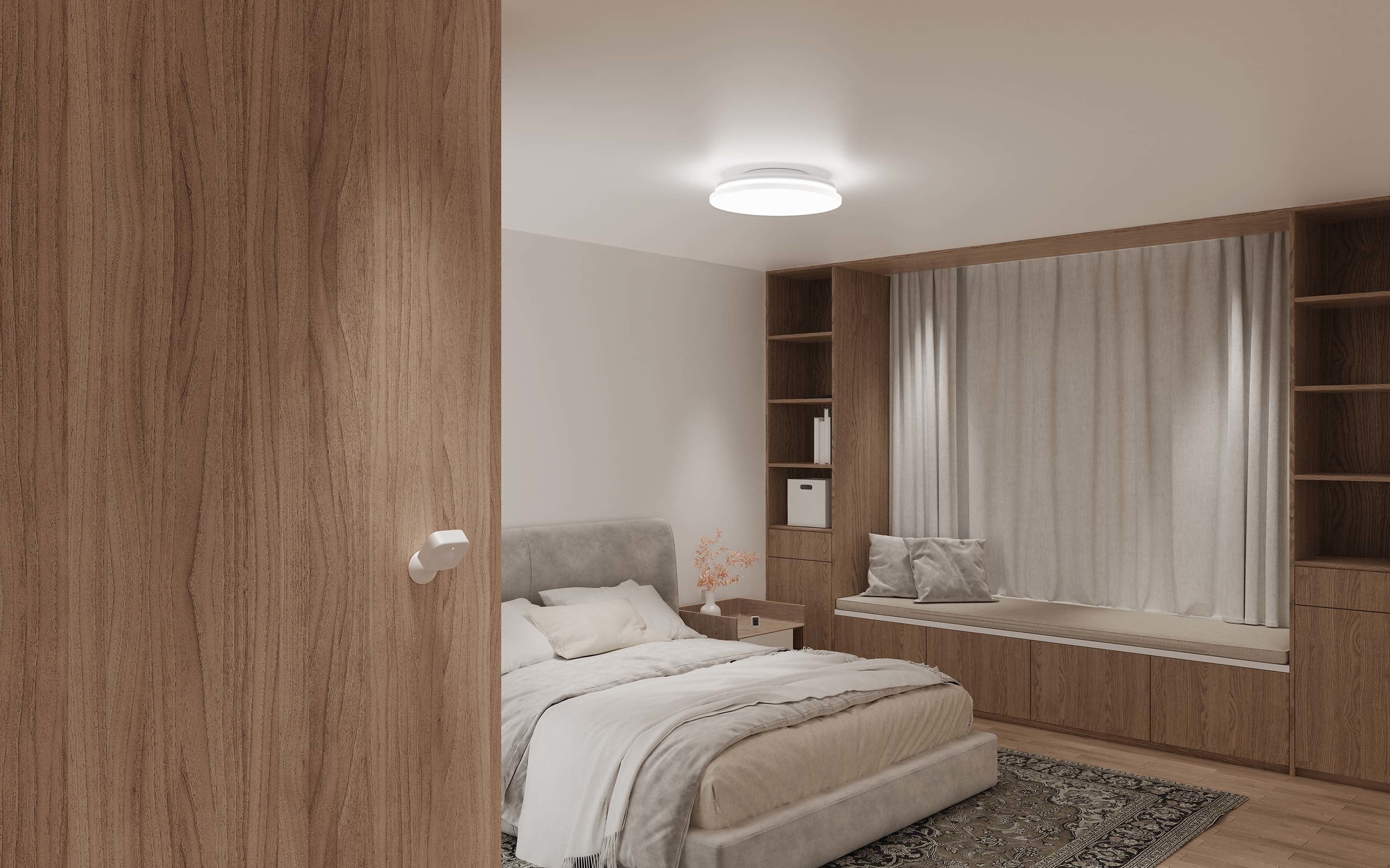 2700K~6500K相当の色温度および1~100%の明るさをそれぞれ無段階で制御可能。シーン別に気分や好みに合わせて明かりを調節できます。明るさは最小1%刻みから、色温度は無段階で調節でき、より繊細で多様なライティングを演出。アプリを通して簡単に操作できるのも当製品ならでは。シーンモードで自動調節も可能なので、お部屋の雰囲気を思い通りにカスタムすることができます。