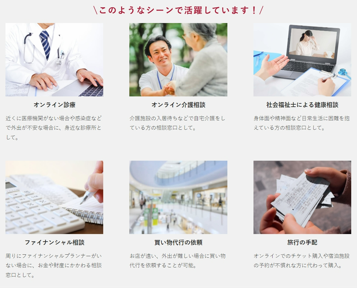 端末操作不要、オンラインで診察や介護相談、買い物代行を実現