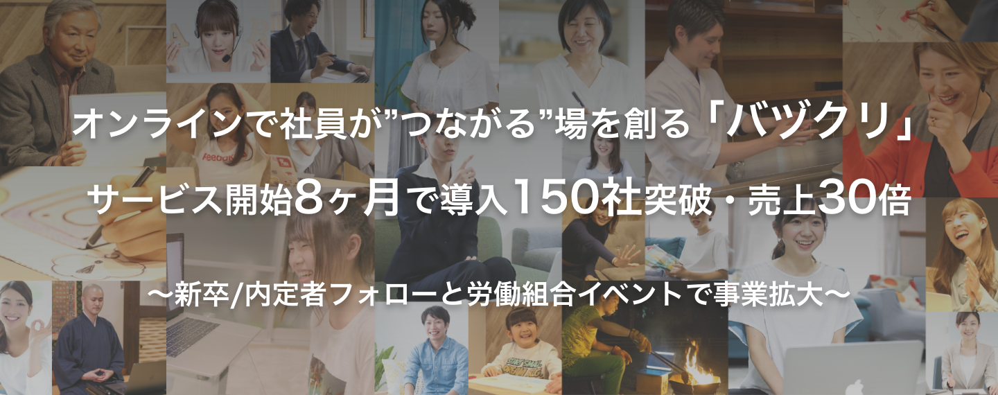 プレイライフ株式会社(本社:東京都港区、代表取締役:佐藤太一)は、同社が提供するオンライン上で企業スタッフ間の“つながり”を育てる“遊び”を取り入れた人材研修・人間関係構築プログラム「バヅクリ」が、サービス開始から約8カ月で、製造・医療・銀行・保険・IT業界などの中堅や大手企業150社以上に採用・導入され、売上が30倍に増加したことを発表します。最大で社員数約10万人規模の大企業が「バヅクリ」を利活用、150社のうち上場企業は約9割、採用した代表的な企業は、株式会社みずほフィナンシャルグループ、三井住友海上火災保険株式会社、株式会社ふくおかフィナンシャルグループ、アイシン精機株式会社、株式会社サイバード、その他、大手飲料会社や証券会社などです。