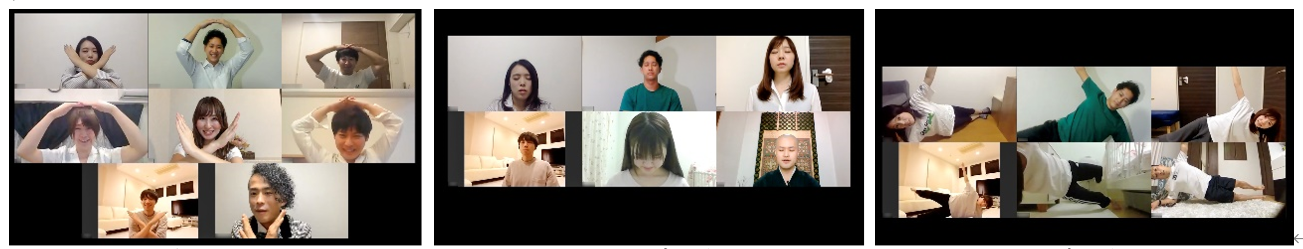 具体的には、オンライン上で、お絵描き、プレゼン、寸劇、自身の精神状態に意識を向け集中的に頭に思い込んだものを描き続ける「マインドフルネス」などのプログラムをとおし、交流を深める内容となっています。