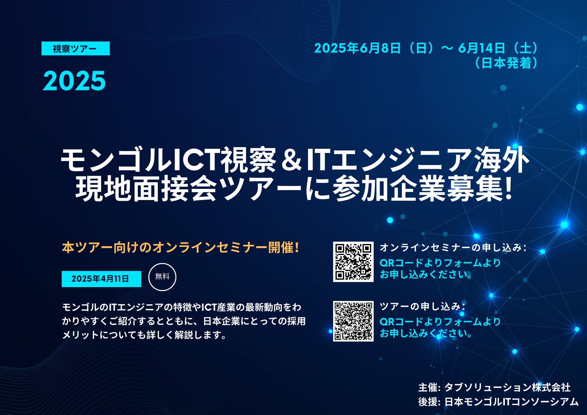 本ツアーに先駆けて、2025年4月11日(金)13:00~14:00にオンラインセミナーを開催致します!
