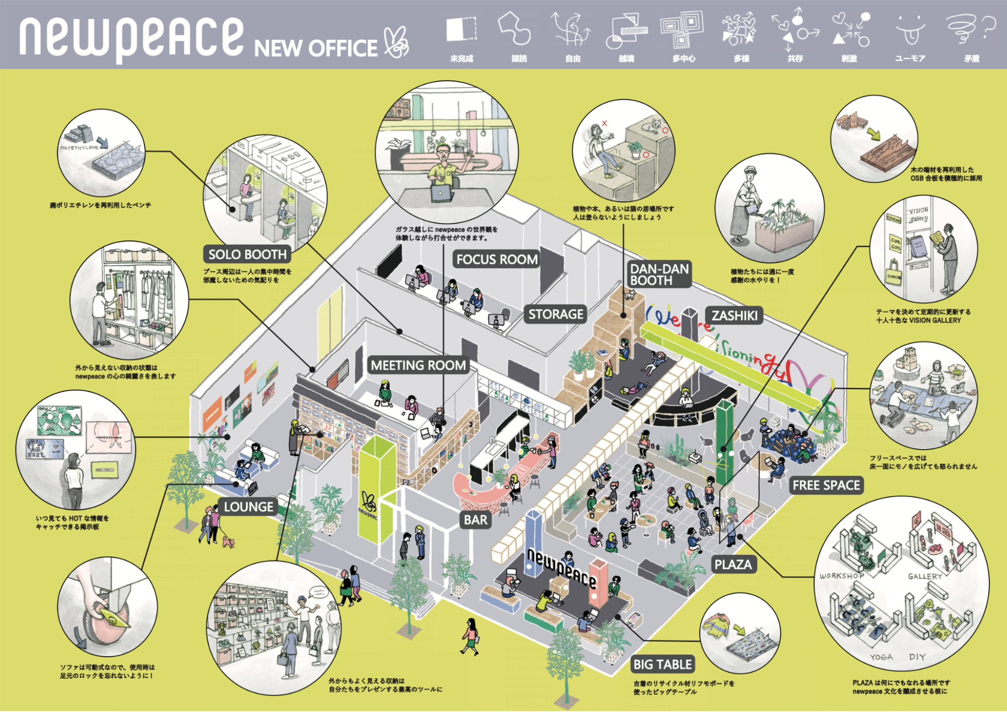 かつては「20世紀をぶち壊す」と叫んでいた僕でしたが、安易な二元論で社会を捉えるのではなく、もっと個性鮮やかな世界がいくつも立ち上がっていくことが「新しい平和」に近づいていくと認識を改め、ミッションを刷新しました。価値観を仕事にすること。未来への意志を掲げ、世の中を巻き込み、社会を“常識”から解放すること。それがニューピースの存在意義だと。
