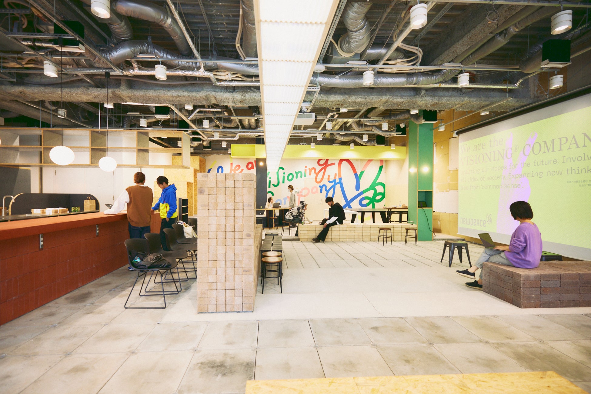さらにオフィスも移転。オフィスというよりも「自由な公園」のような場所。イベント広場、会議室、個室、バーカウンターと、様々な機能を備えつつも、メンバーが自由に使いこなし、変えていけるような、自由で未完成な場。NIKKEN NADチームの設計です。