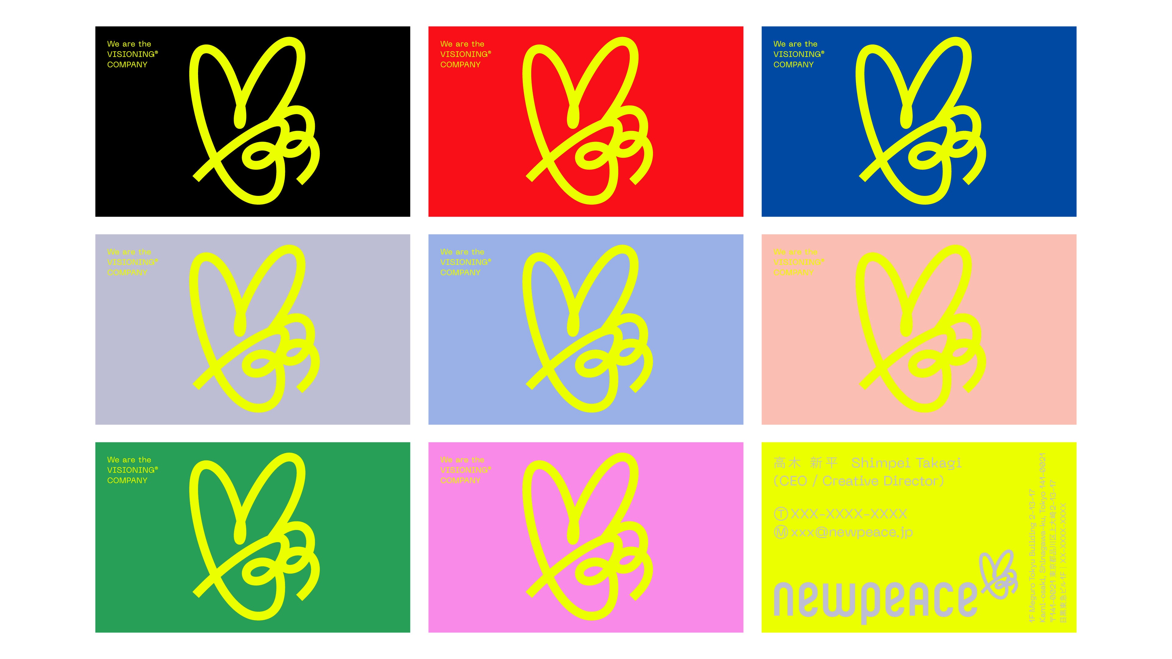 第二創業期を迎えるニューピース。事業拡大に伴うチームの増加やメンバーの増員に伴い、多様性を保ちながらも全員が一丸となるためのVIが求められていました。コンセプトは軽やかさ。ニューピースのみなさんは熱きビジョンを携え、真摯に社会課題に向き合いながらも、軽やかに踊るように新たな世界を描いてるのだと思います。これからもより柔軟に、意味や常識にとらわれずおおらかに活動を続けてもらいたいと考え、気ままに一筆書きで描いたピースマークをシンボルにしました。ロゴタイプもシンボルに合わせデザインしています。色彩はメインカラーであるイエローをより先鋭的な色に調整し、サブカラーとして包容力のある優しい色や、知性を感じるクレバーな色、新鮮さのあるエッジィな色も採用しています。このVIたちが、ニューピースのみなさんの発展の一助になることを願ってます。