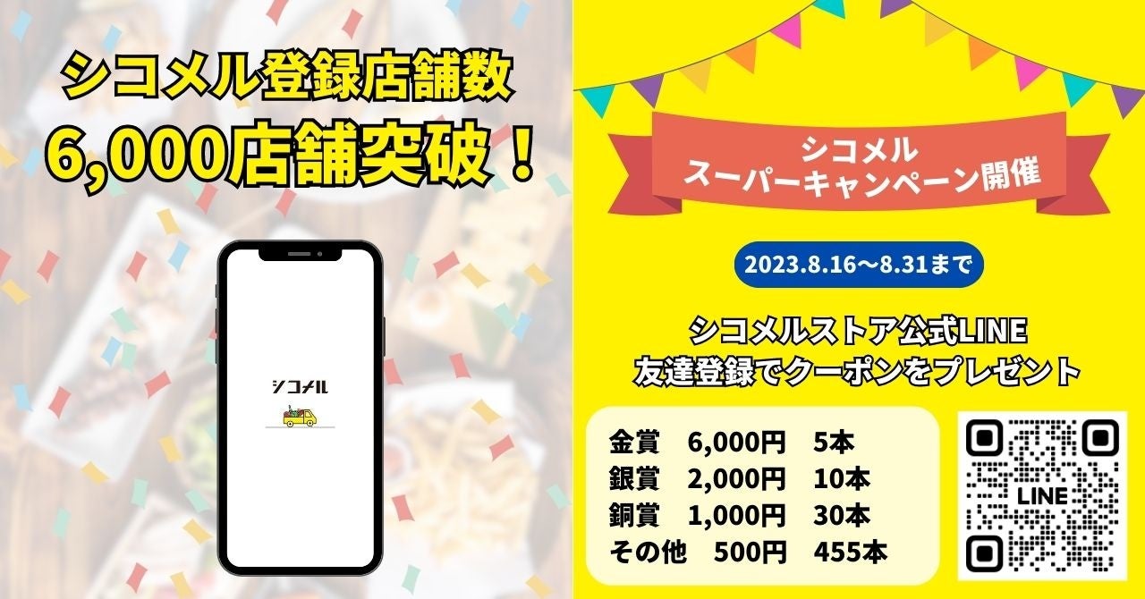 『シコメル』登録店舗数6000店舗を突破!仕込み済み商品がお得に購入できる「シコメルスーパーキャンペーン」を8月16日から開催
