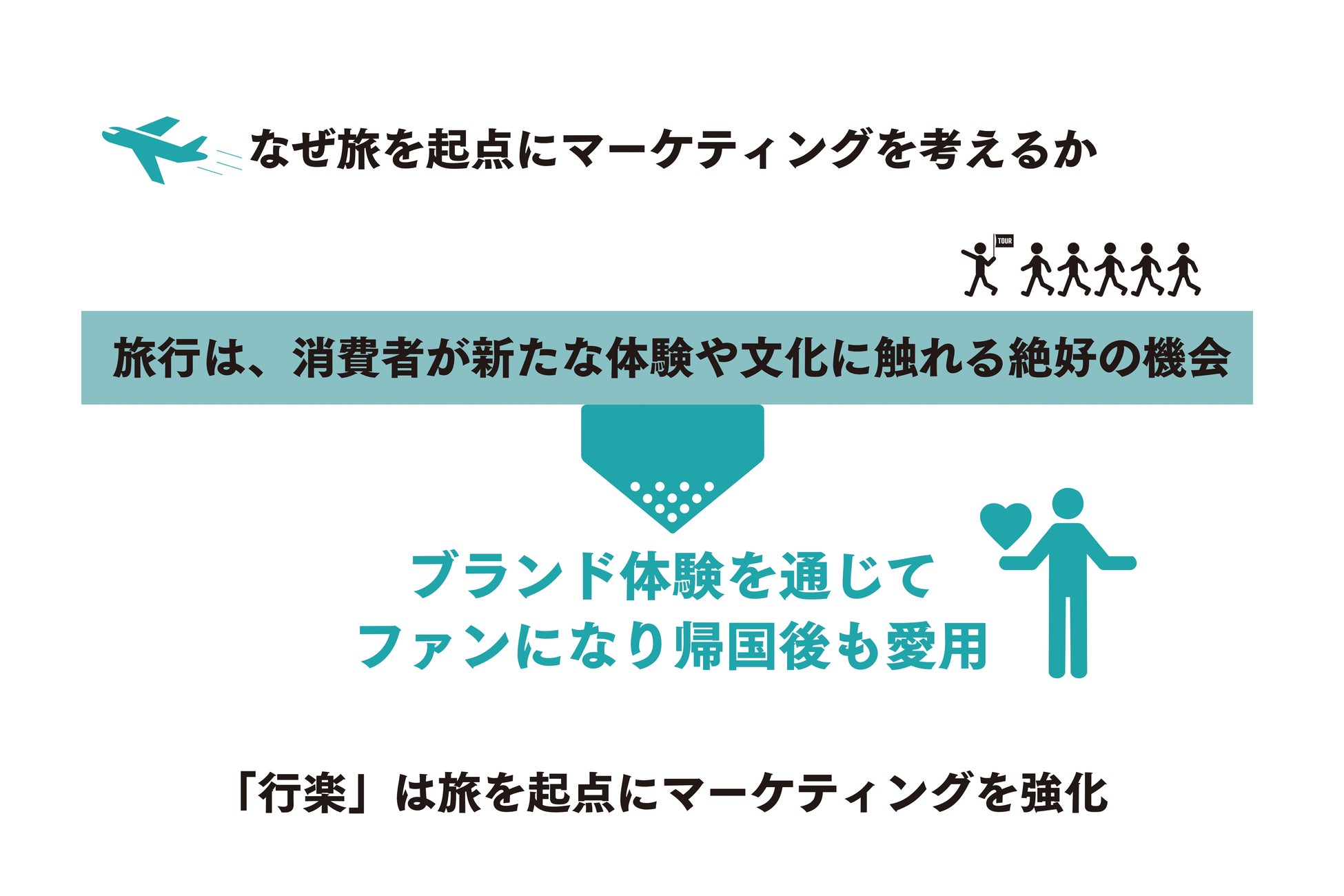 旅行は、消費者が新たな体験や文化に触れる絶好の機会です。これを起点に、消費者がブランドの体験を通じてファンになり、帰国後もそのブランドを日常利用するという行動変容を促すことが可能です。行楽は日本のライフスタイルを紹介するメディア「行楽」と、それに派生するインバウンドの高付加価値化コンサルティングが得意であるため、旅を起点にブランドの強化を行うことを目指していきます。