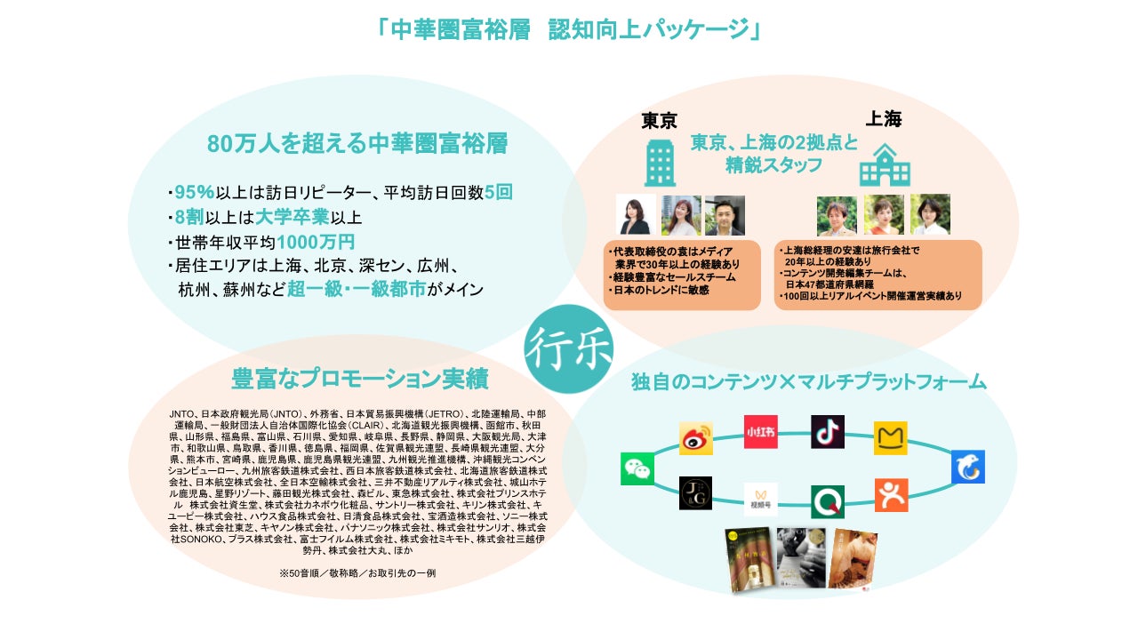 株式会社行楽ジャパン(本社:東京都港区 代表取締役:袁静 以下「行楽」)は、中華圏の富裕層に向けたマーケティングを手掛ける新たなサービス「中華圏富裕層認知向上パッケージ」を8月10日より提供開始をし、中国市場への取組みを強化を目指す日本企業や自治体の中華圏におけるデジタルマーケティング強化に貢献いたします。