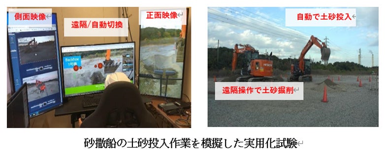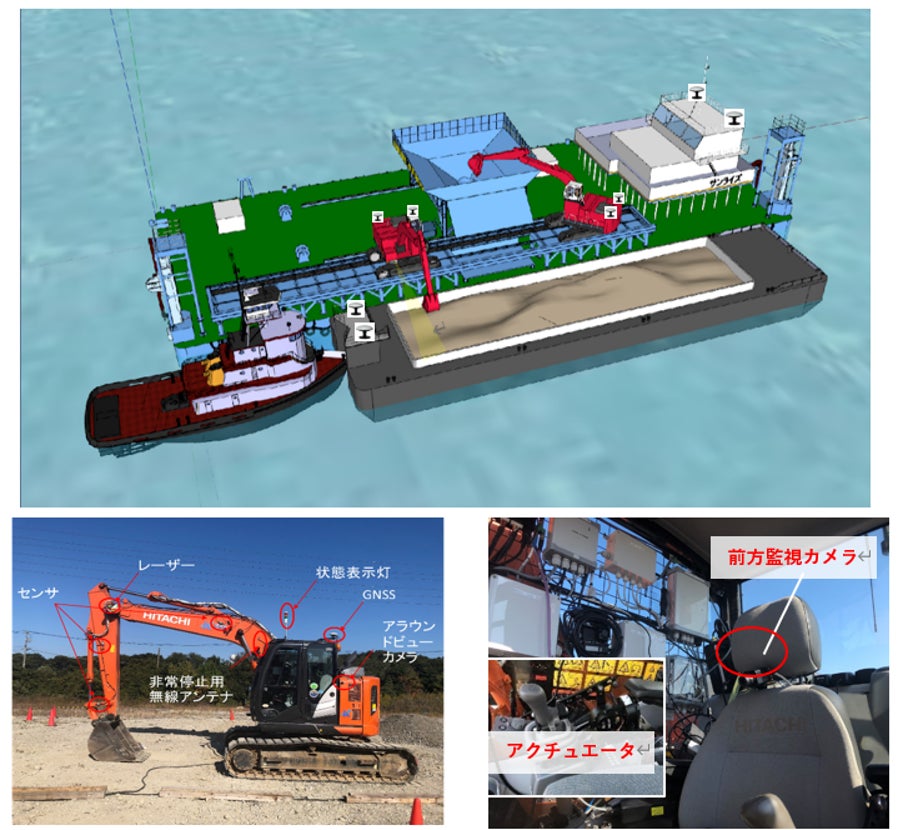 ARAV株式会社が開発した油圧ショベルの遠隔操作・自動運転システムで東亜建設工業株式会社の砂撒船の生産性向上活用