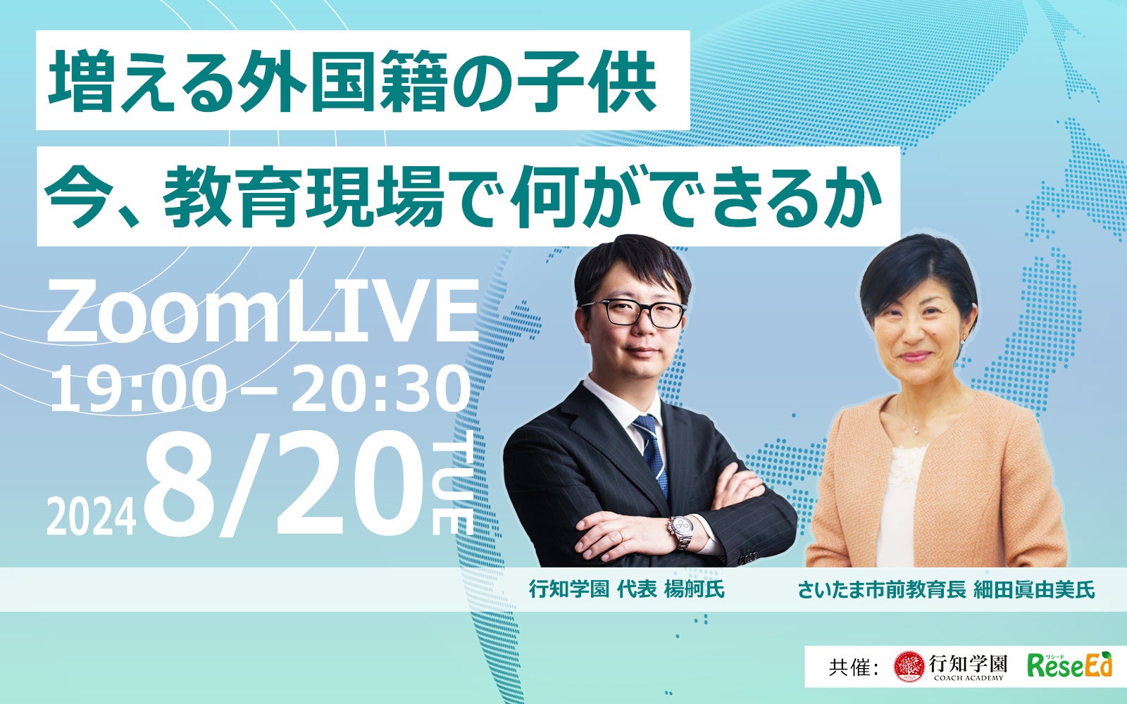 2024年8月20日(火)19時より教育業界ニュースメディアのリシードと共催で、教育現場に増える外国籍の子供たちの現状について詳しく解説するオンラインウェビナーを開催しました。