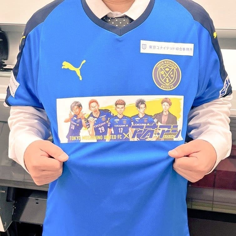 背面上部にロゴの入ったトレーニングユニフォームを、今年から監督を勤めます依田博樹と副キャプテンNo.5 鈴木 裕也選手からお渡しさせていただき、