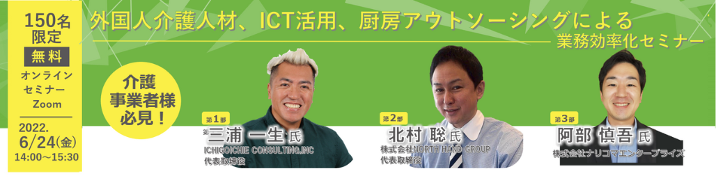 【外国人介護人材、ICT活用、厨房アウトソーシングによる業務効率化セミナー】を2022年6月24日(金)にオンラインにて開催することをお知らせいたします。