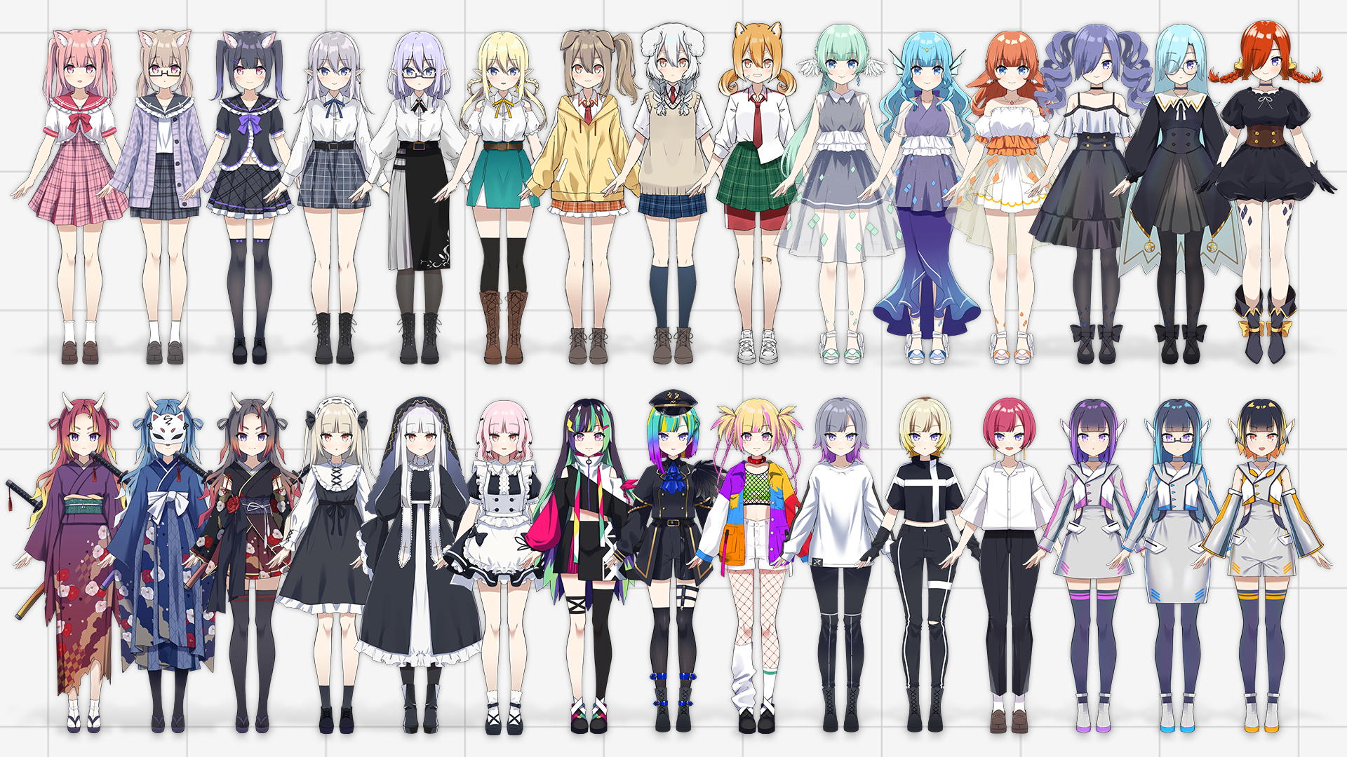 ・最大30種(10モデル×3タイプ)の配信用キャラクターリソース(全身立ち絵・Live2Dモデルのセット)を利用可能