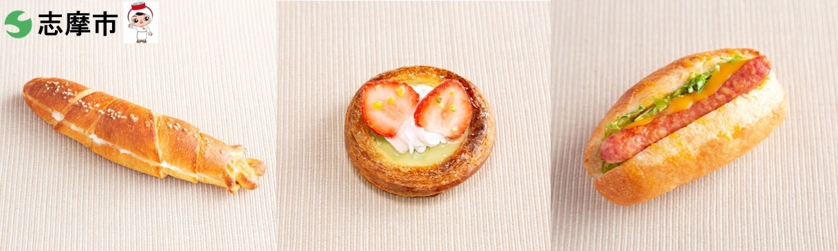 そして、3月から志摩市産の食材を使った『パンで旅する志摩 しまパン』の販売を行います。春・夏・秋・冬の四季にあわせて、志摩市の旬の食材などを使用し、季節ごとに3種類のパンを販売予定。第1弾となる『春のしまパン』では、「伊勢えび」、「レッドパール(いちご)」、「伊勢志摩パールポークあらびきウインナー」を使用したパンが登場!513BAKERYのパンで志摩への旅行気分を味わってみてはいかがでしょうか。