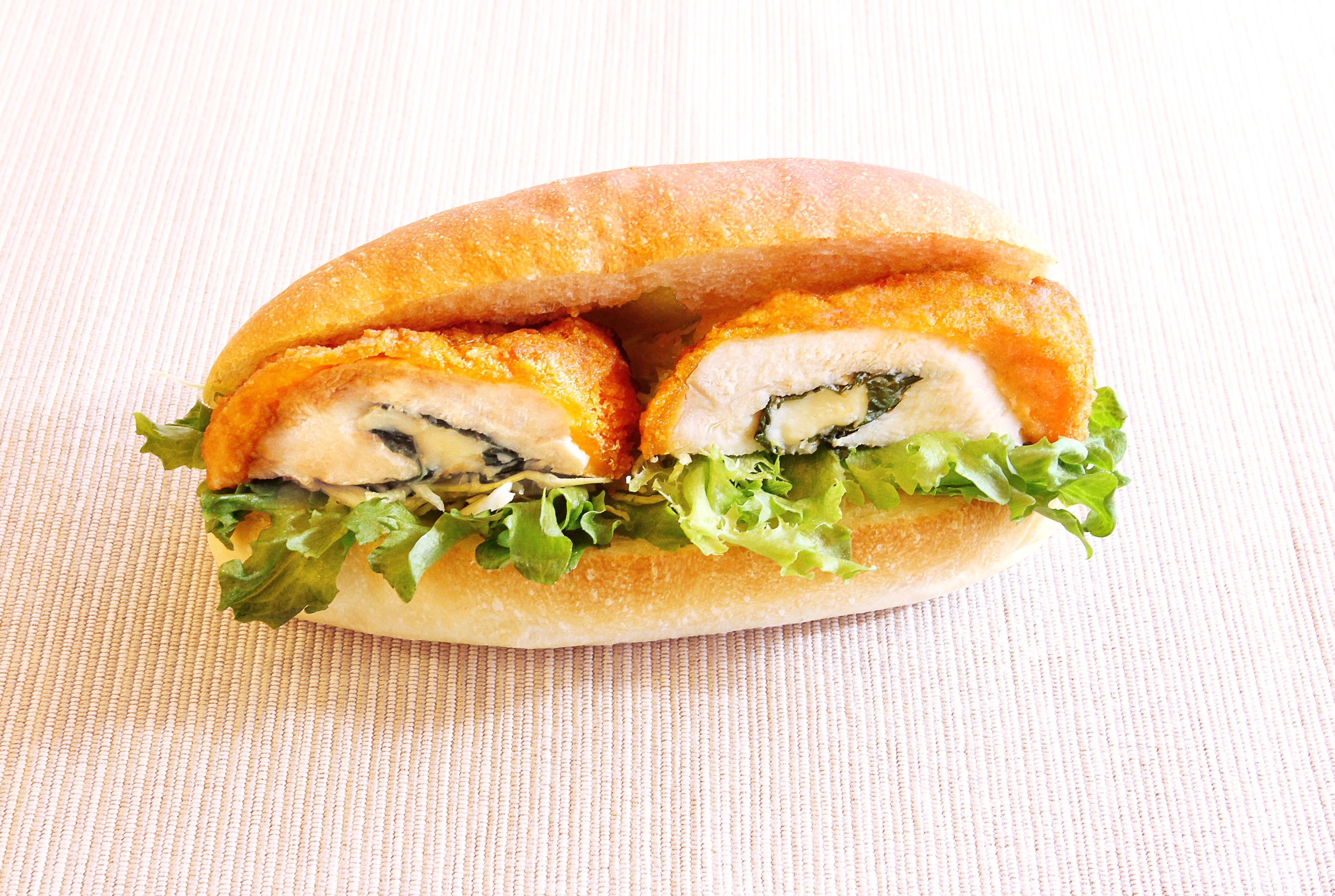 大葉と一緒に揚げたささみチーズカツを相性の良い梅マヨネーズと合わせてサンド。ボリューム満点でヘルシーなコッペに仕上げました。