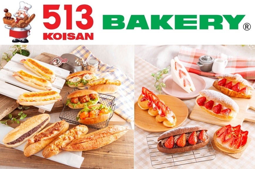 三重県・愛知県で全11店舗を展開する513BAKERYは、3月から「ふわっ!パリッ!ぎゅっ!グルメサンドフェア」&「いちごパンフェア第3弾」を開催。人気のコッペパン・フランスパン・パニーニが大集合した「ふわっ!パリッ!ぎゅっ!グルメサンドフェア」には、ぷりぷりの海老が3匹入ったエビチリコッペや花畑牧場のラクレットチーズをたっぷり使ったフランスパンなど、新商品5品が登場!513BAKERY特製のボリューム満点サンドは、ランチにもぴったりです!また、三重県産のかおりのいちごなど旬のいちごをたっぷり使った「いちごパンフェア第3弾」には、タルトなどの新商品が登場。韓国で人気の揚げドーナツ「クァベギ」にも注目です。