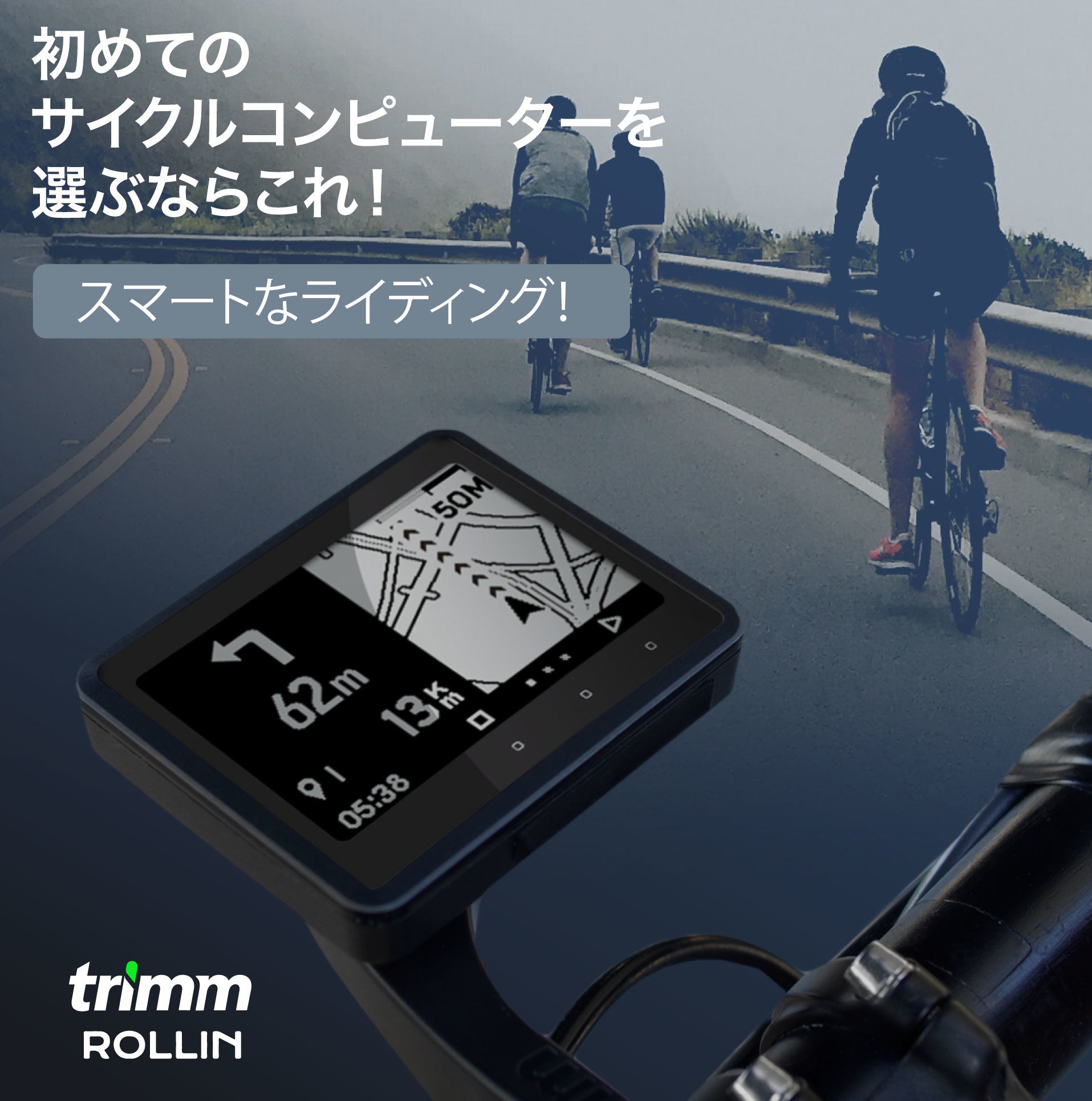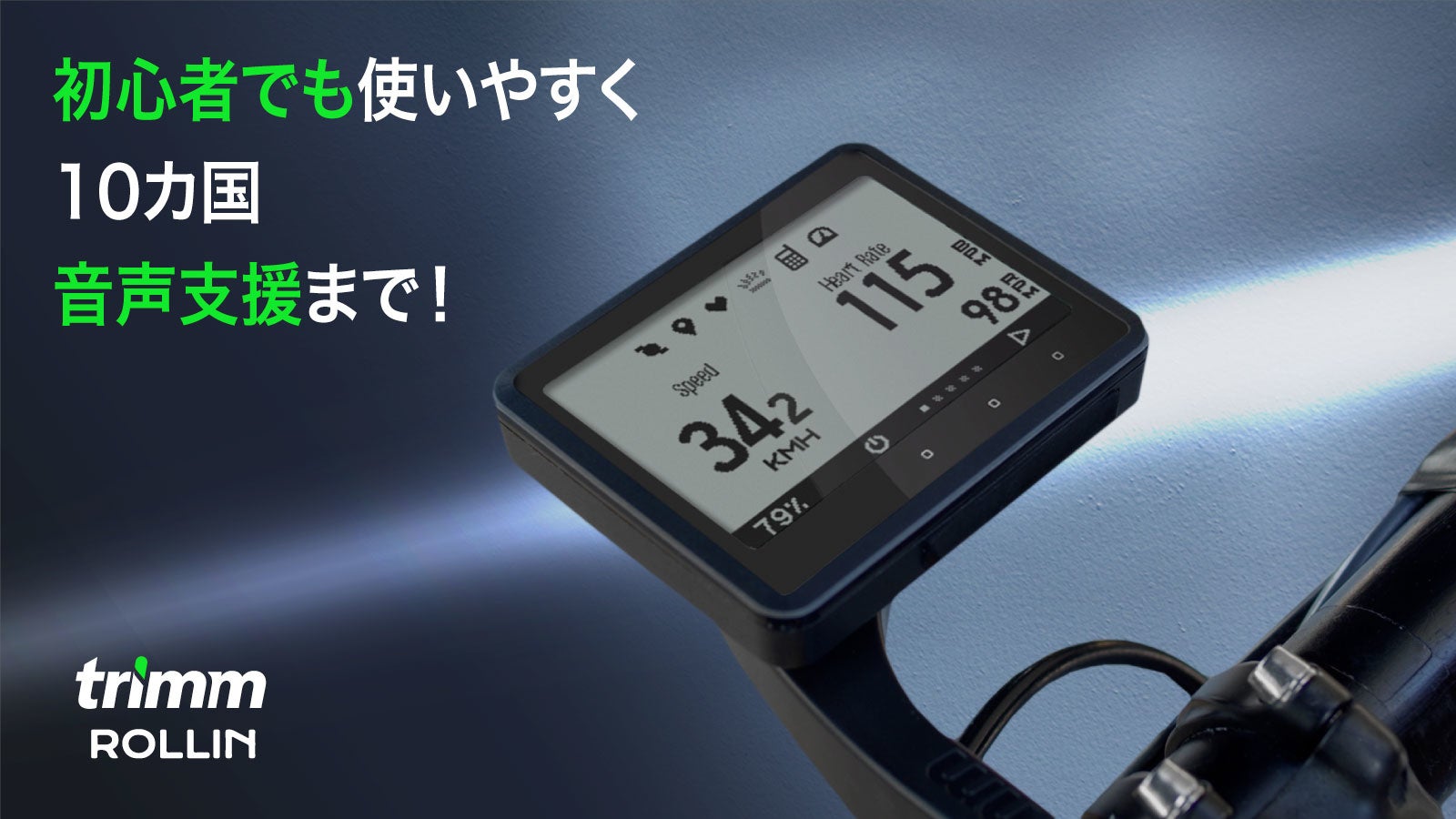 簡単操作で初めてのサイクルコンピューターにぴったりのtrimm ROLLIN!