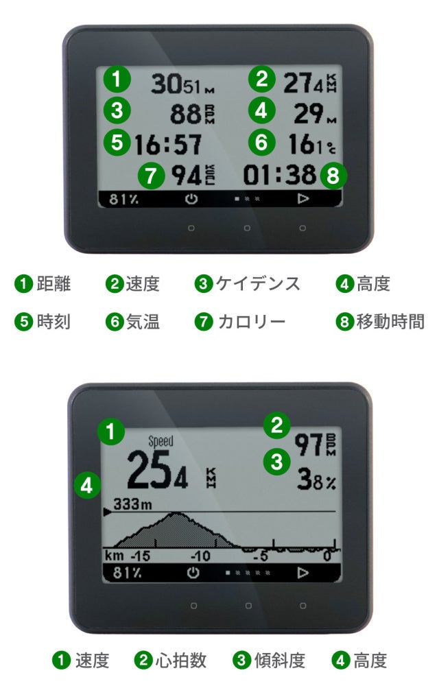 速度・ケイデンス・ペースメーターなどを知ることが出来ます。