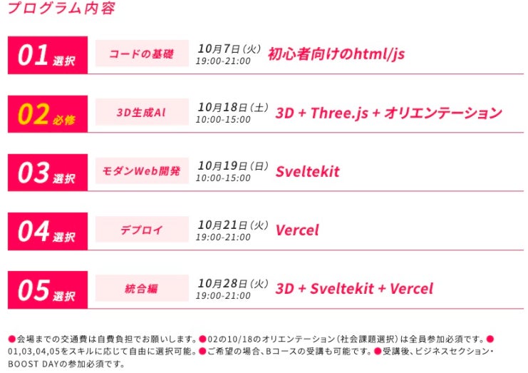 ・Aコース:3D技術や生成AI、Web技術活用が学べる(初級者〜中級者向け)