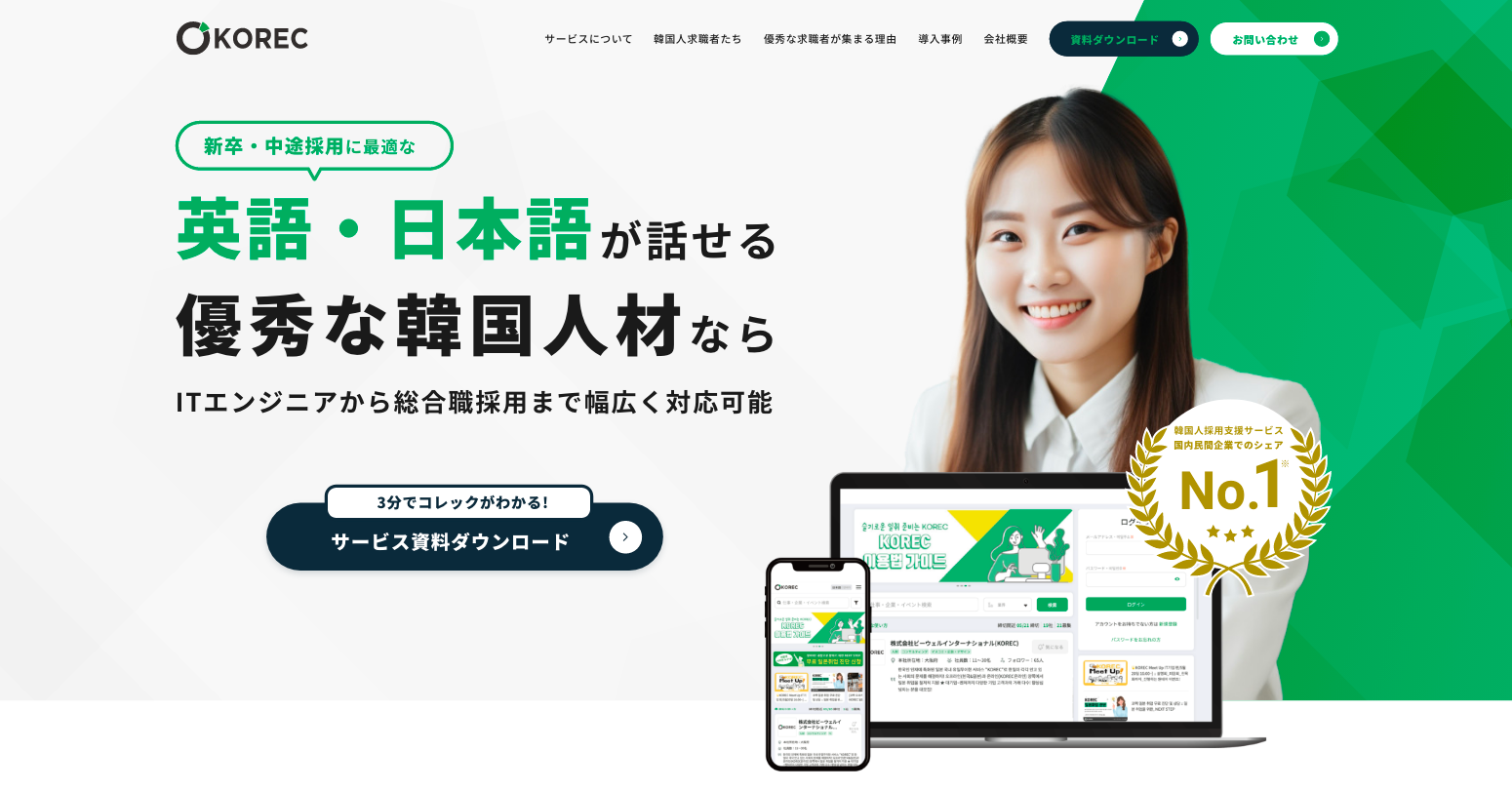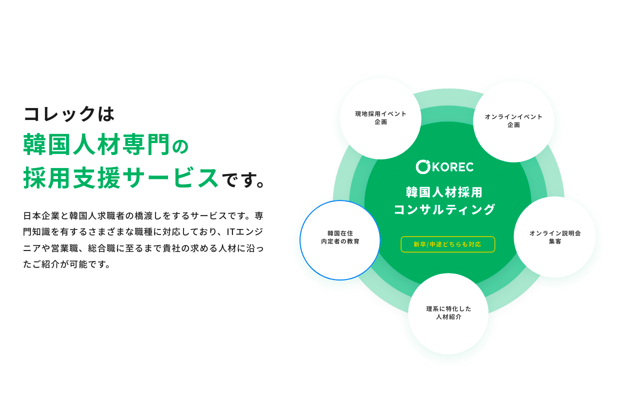 事業内容 :韓国人材に特化した採用支援サービス「KOREC」 の運営